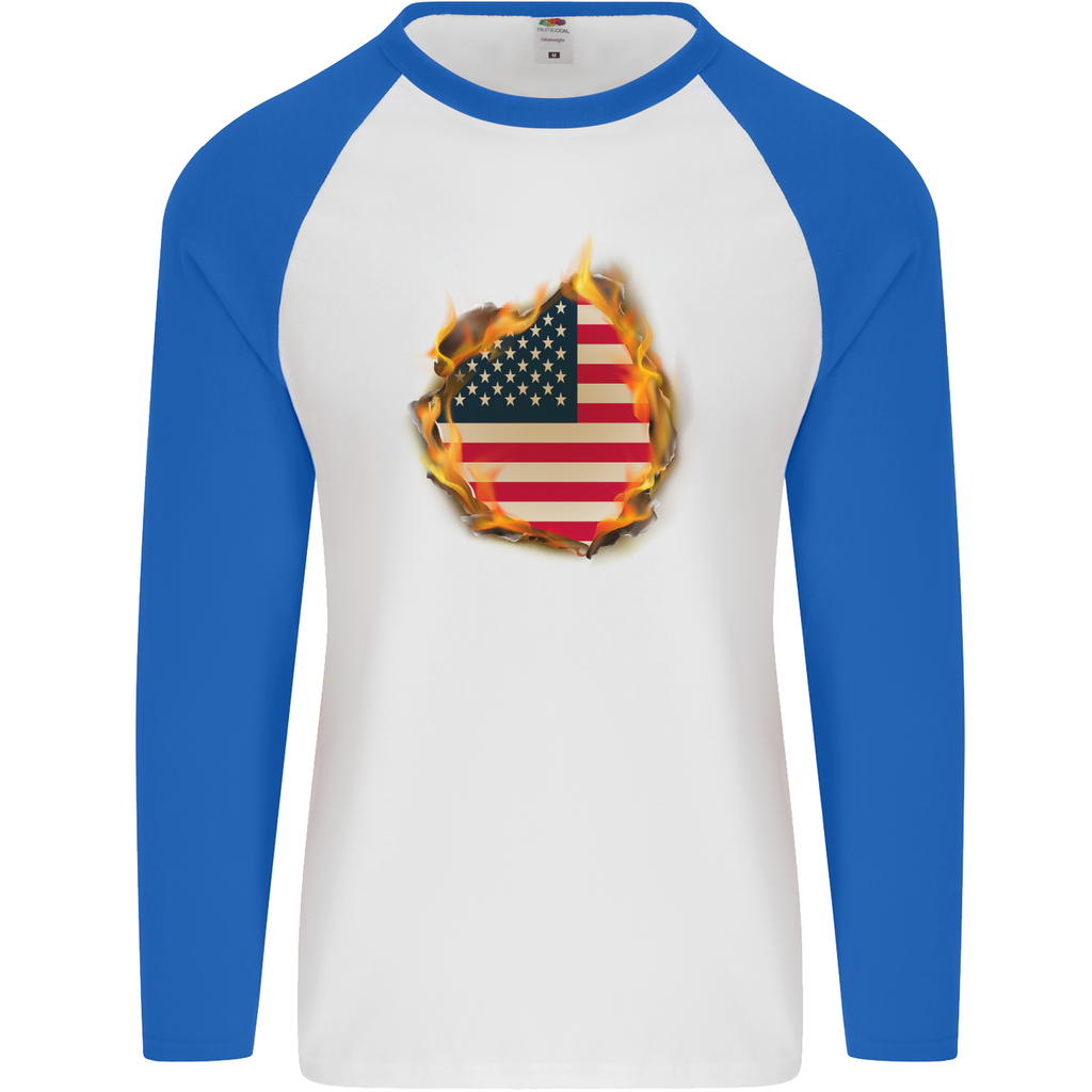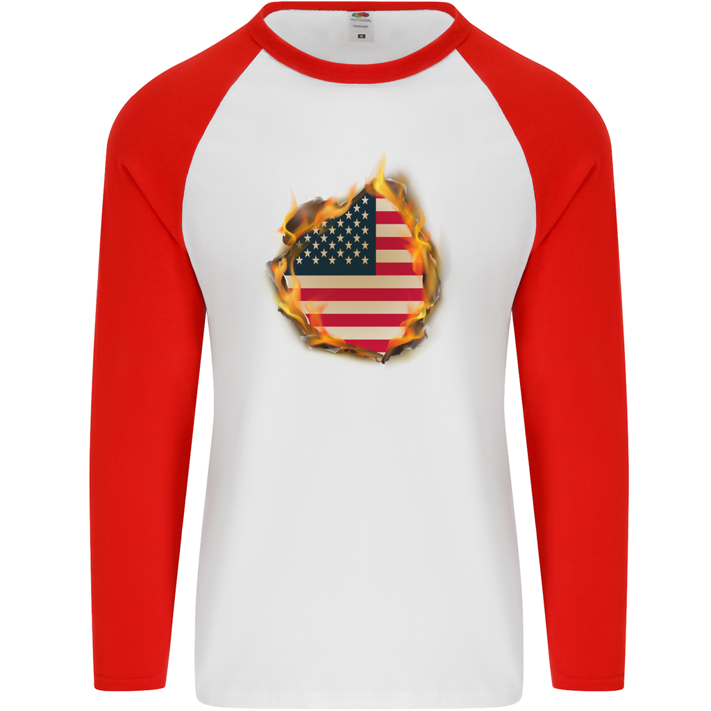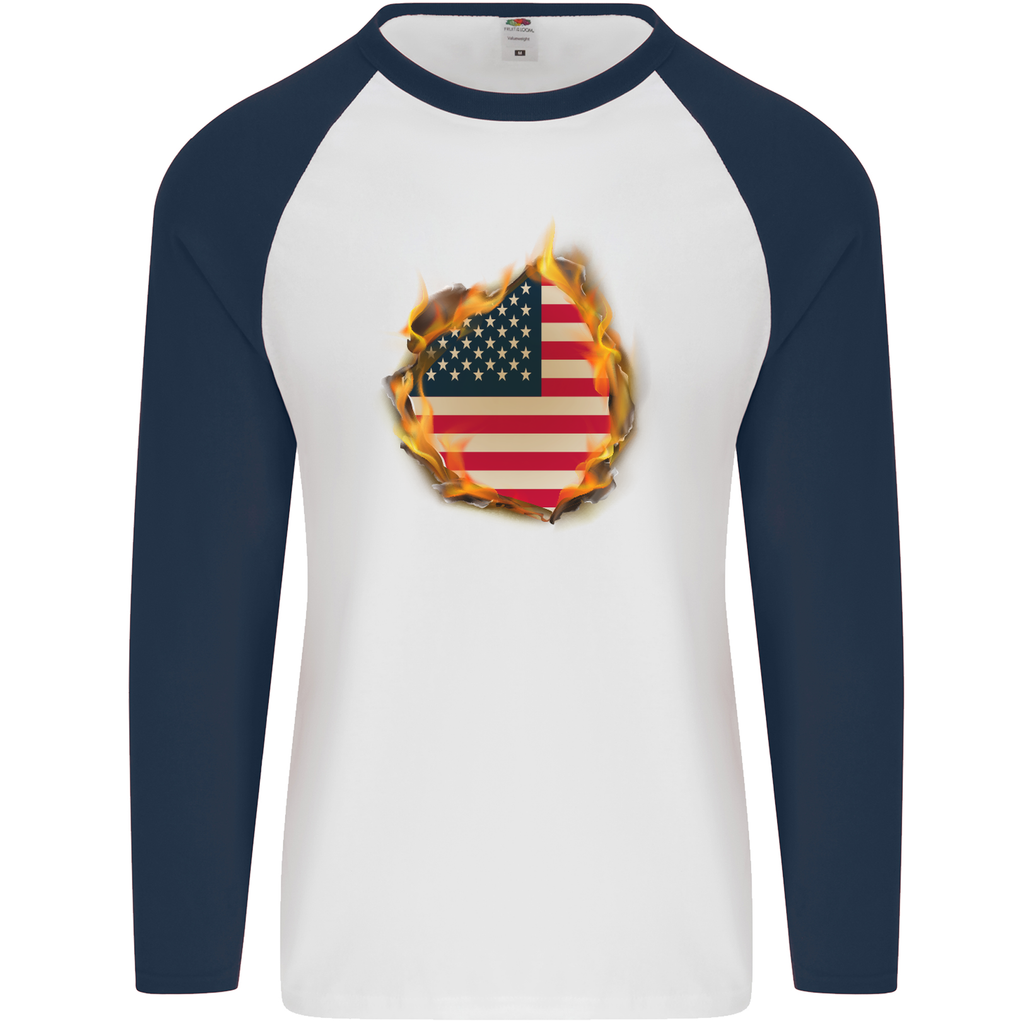 Embrace your love for America and make a statement with the Stars & Stripes American Flag Fire USA Men's Long Sleeve Baseball T-Shirt. It’s more than just a piece of clothing; it’s a celebration of your patriotic spirit. Order yours today and be prepared to show off your American pride wherever you go!