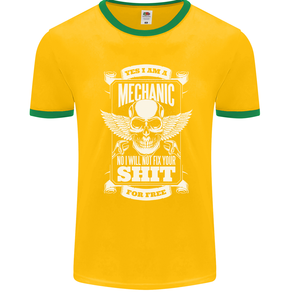 This Funny "I'm a Mechanic No Won't Fix For Free" Men's Ringer T-Shirt by FotL is not just a piece of clothing; it's a statement piece that showcases your personality and sense of humour. Make a statement and add a touch of fun to your everyday outfits with this quirky t-shirt!