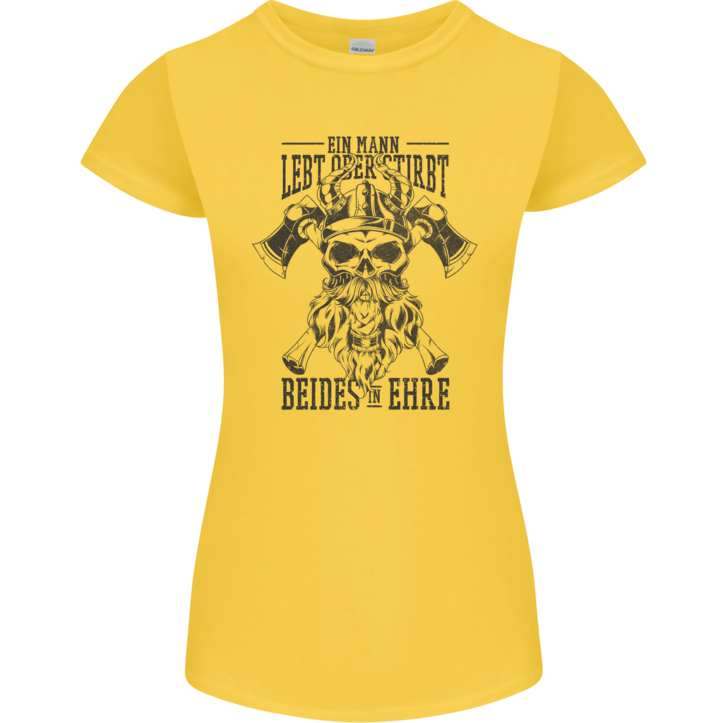 - Impressive Design: Stand out from the crowd with the striking German Viking Women's Petite Cut T-Shirt, featuring intricate Viking-inspired graphics that symbolize courage and resilience.