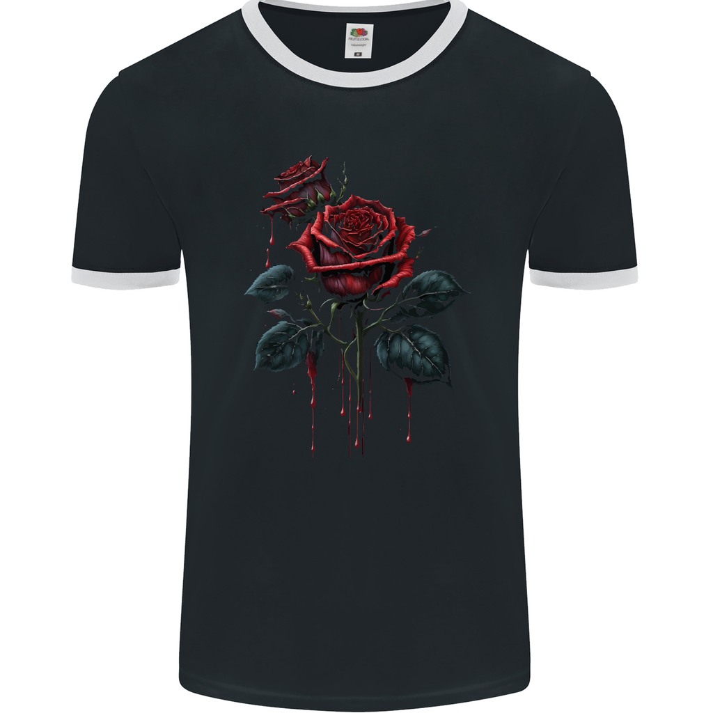 2 Roses Dripping With Blood Gothic Goth Mens Ringer T-Shirt FotL