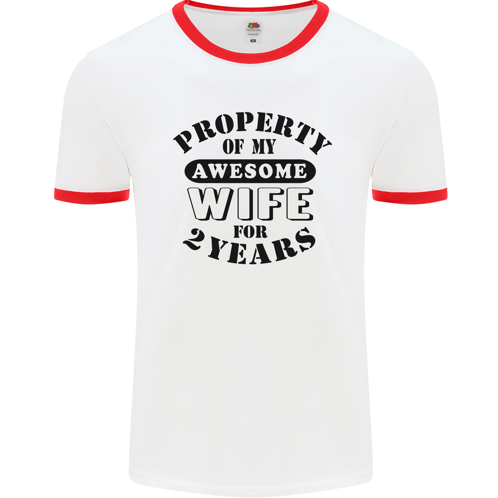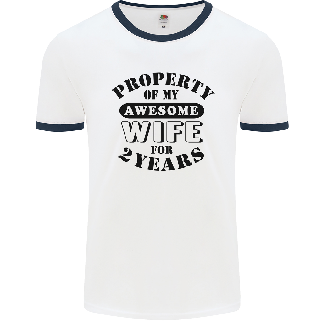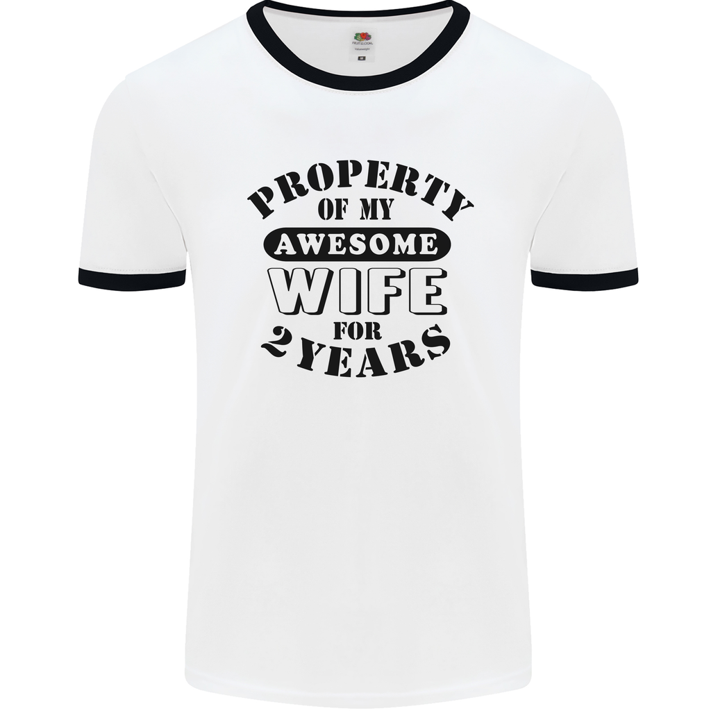 Introducing the perfect gift for your 2nd wedding anniversary - the 2 Year Funny Wife Mens Ringer T-Shirt. Celebrate another year of love with a touch of humour and style!
