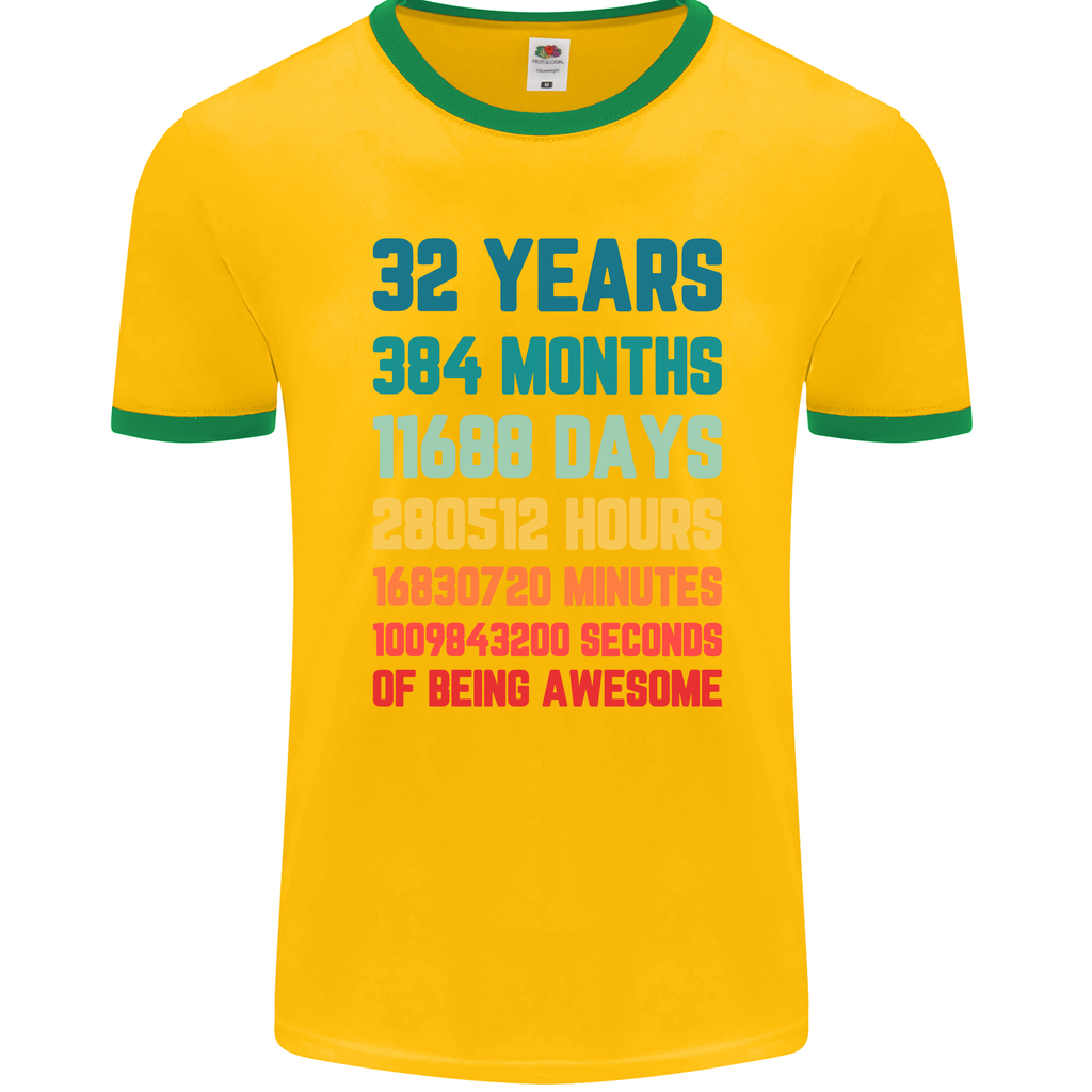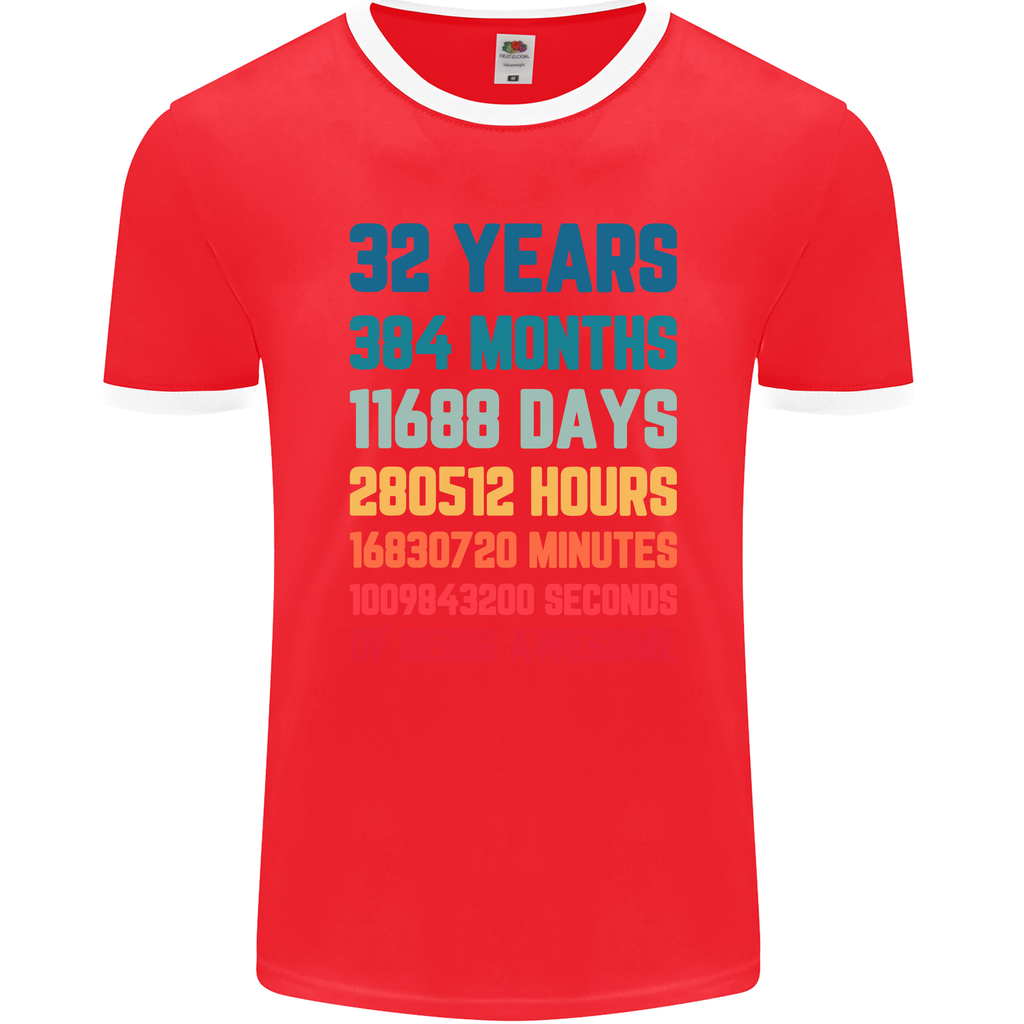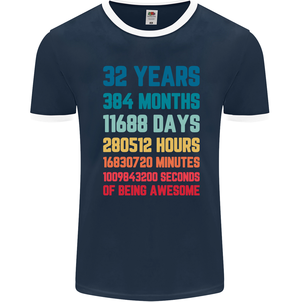 Whether you're celebrating your own 32nd birthday or looking for a thoughtful gift for someone special, this men's ringer t-shirt is a surefire way to make a memorable statement. Embrace your age with pride and style as you step out in this eye-catching piece that celebrates the journey of 32 years in a truly unique way.