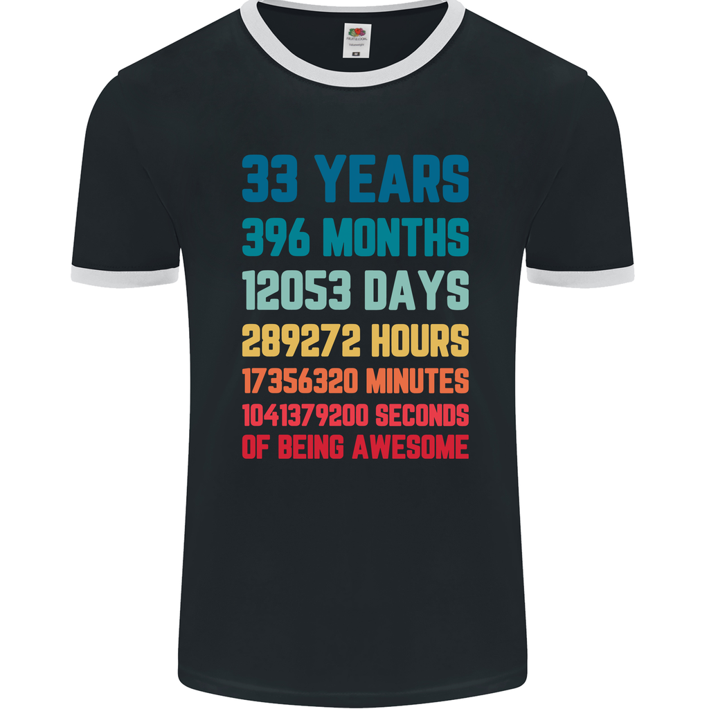 Dress to impress and mark this momentous occasion with our 33rd Birthday 33 Year Old Men's Ringer T-Shirt. Embrace the essence of life, style, and individuality with a garment that is as unique as you are.