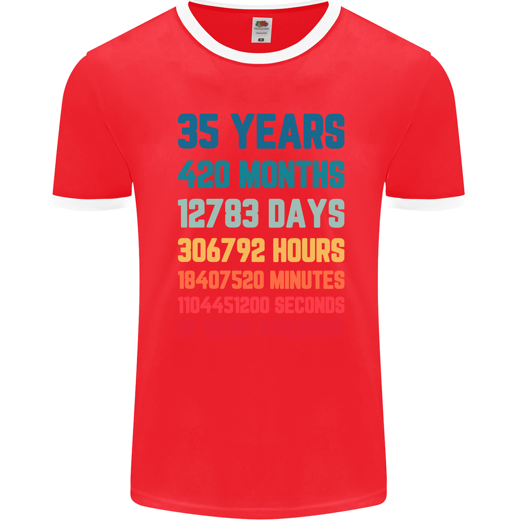 - Stand Out Style: The bold "35th Birthday" design on this ringer t-shirt is sure to make you the centre of attention at any celebration or casual outing.