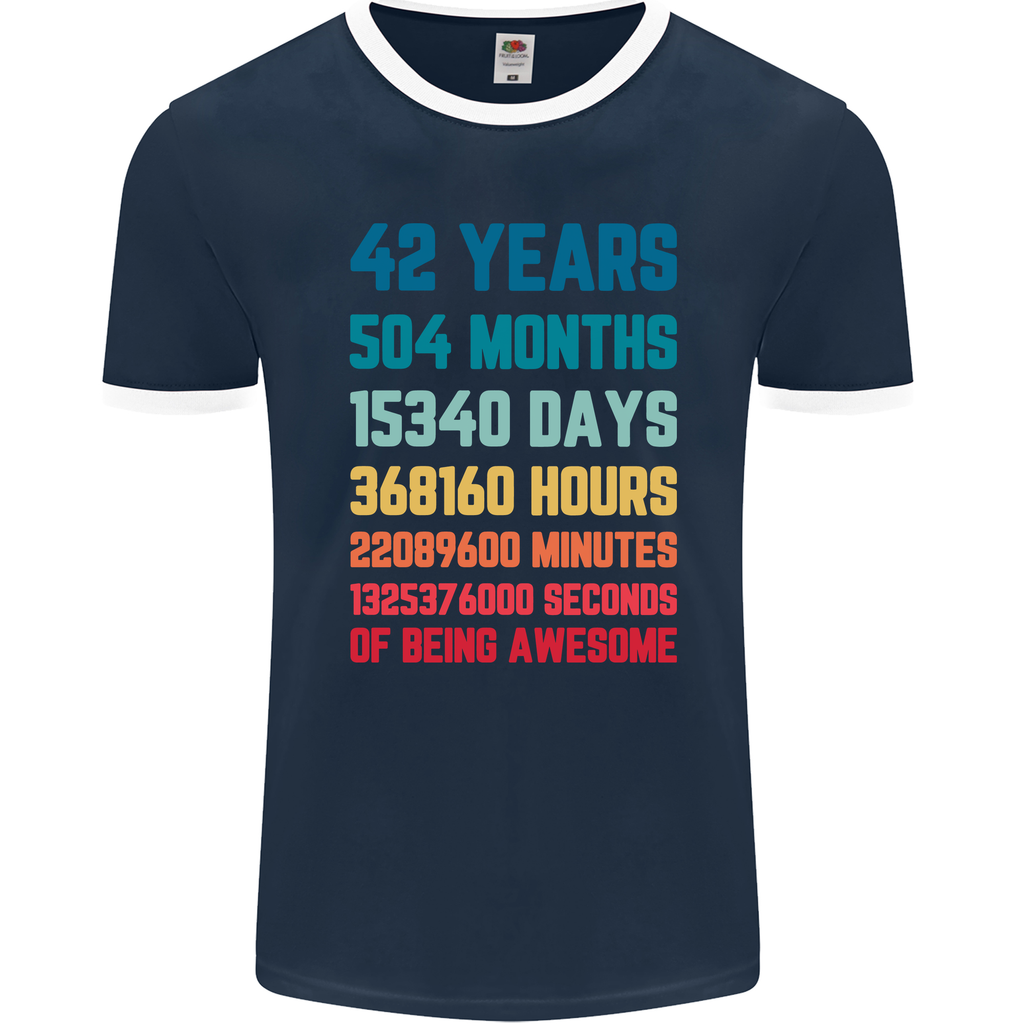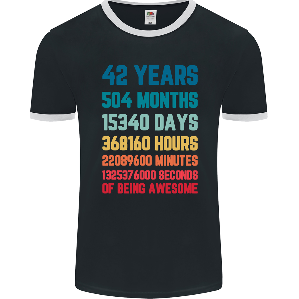 Whether he's celebrating with friends and family or just enjoying a casual day out, this 42 Year Old Mens Ringer T-Shirt is the perfect choice. The classic fit and versatile design make it easy to pair with jeans, shorts, or his favourite loungewear.
