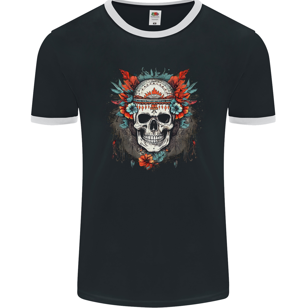Embrace your inner free spirit with our Bohemian Style Tribal Skull Men's Ringer T-Shirt by FotL. This unique piece combines edgy tribal vibes with a touch of boho flair, making it a standout addition to any wardrobe.