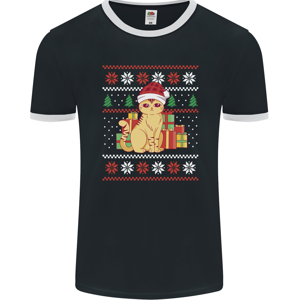 Welcome to the festive season with our adorable A Cute Christmas Cat With Presents Xmas Men's Ringer T-Shirt by FotL. This delightful shirt is perfect for anyone who loves Christmas, cats, and a touch of whimsy in their wardrobe.