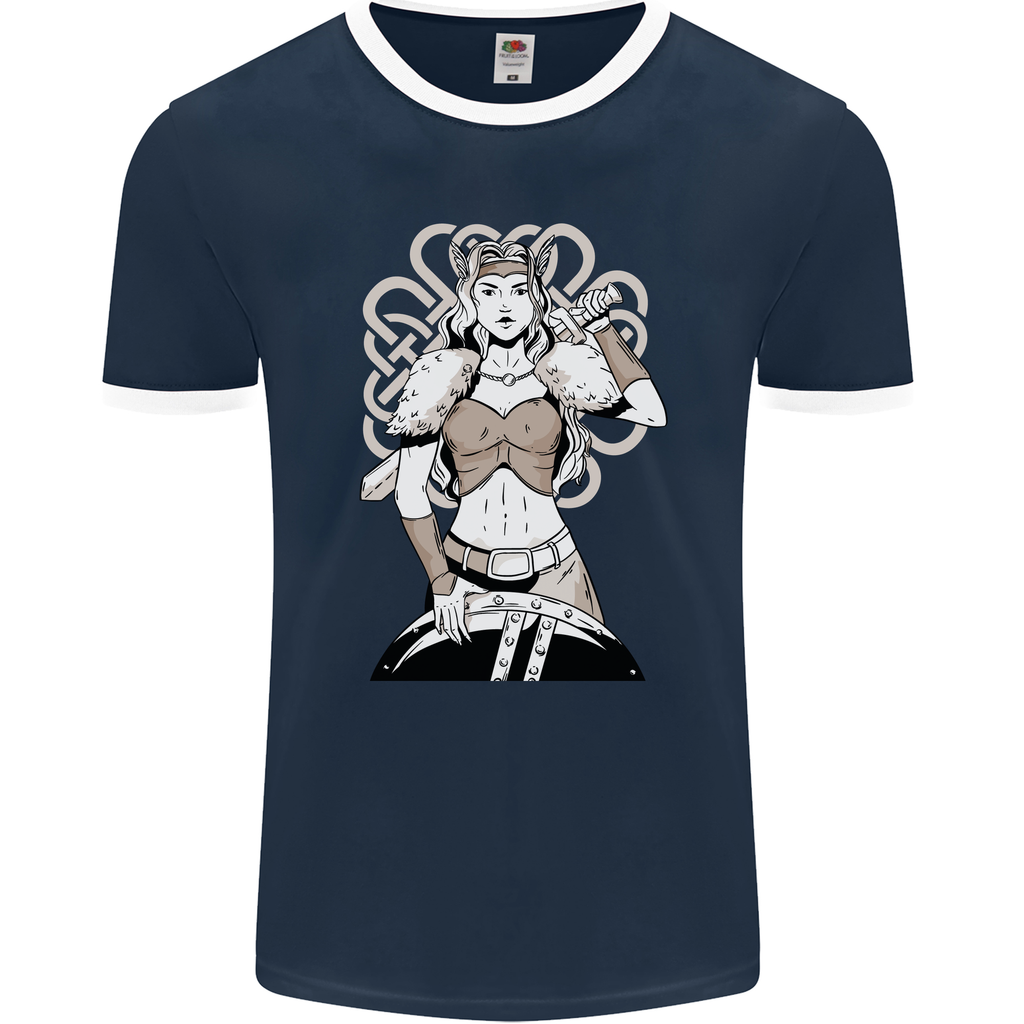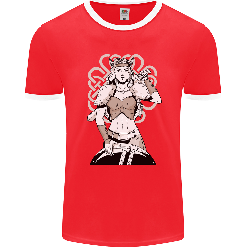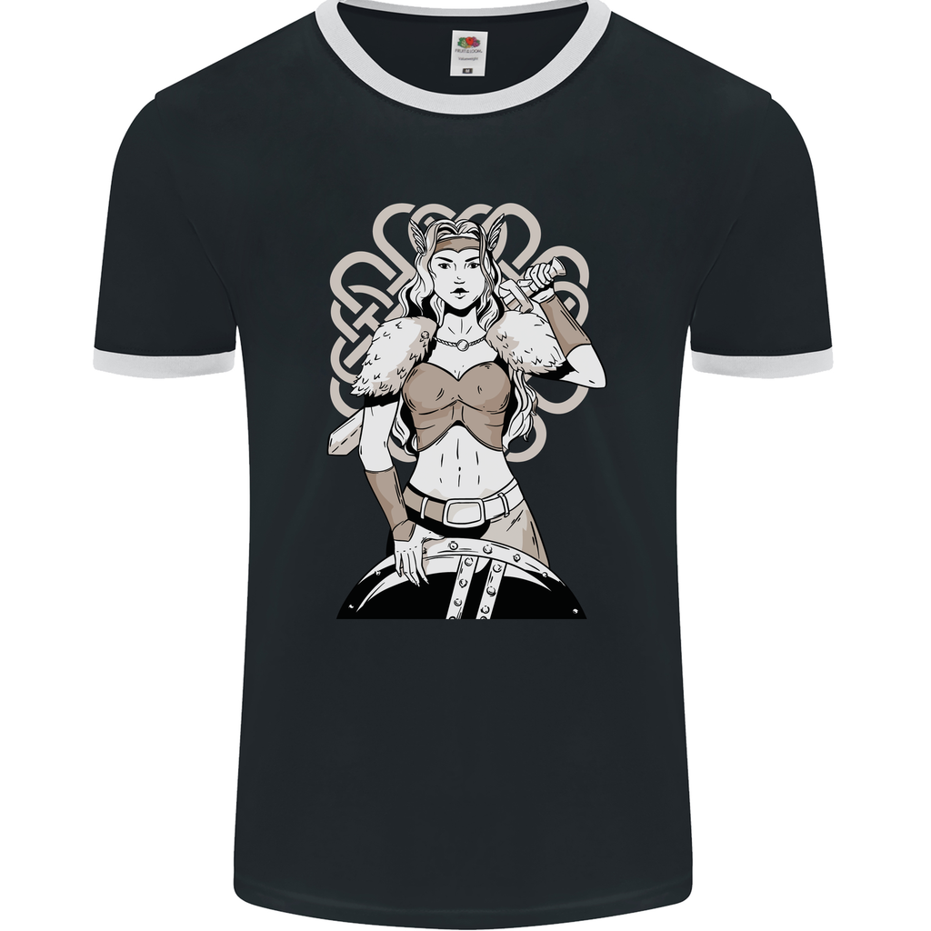 Step into the fierce world of Viking warriors with our Female Viking Shield Maiden Warrior Mens Ringer T-Shirt by FotL. This unique and eye-catching shirt pays homage to the legendary shield maidens of Norse lore, combining style and history in one striking design.