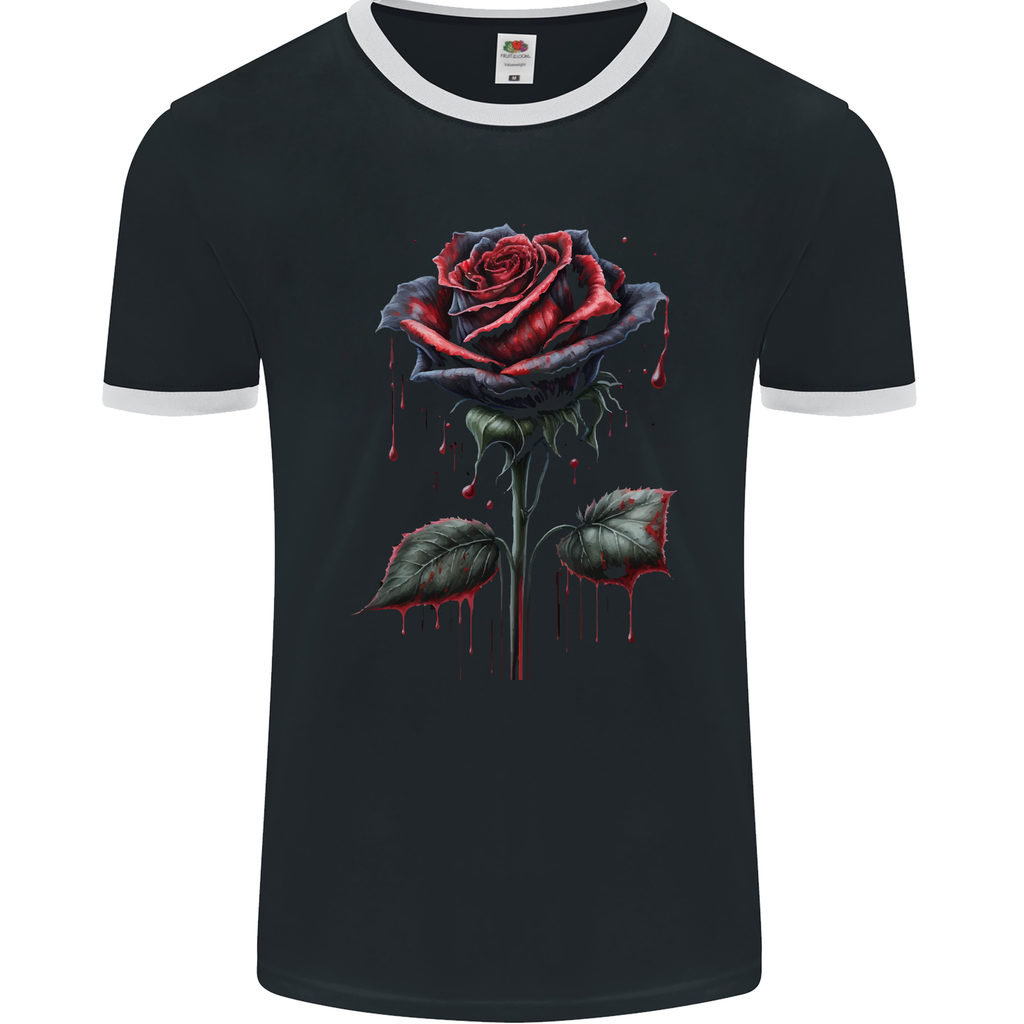 Elevate your wardrobe with a touch of darkness and mystery with our Gothic Rose Dripping With Blood Goth Men's Ringer T-Shirt. Embrace the allure of gothic fashion and let your outfit reflect your innermost desires and passions.