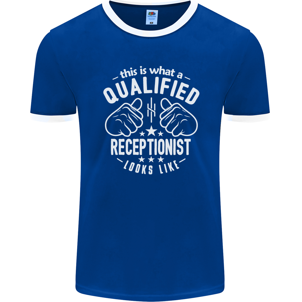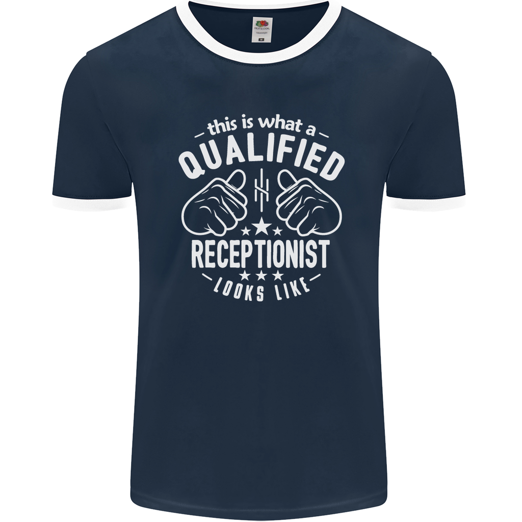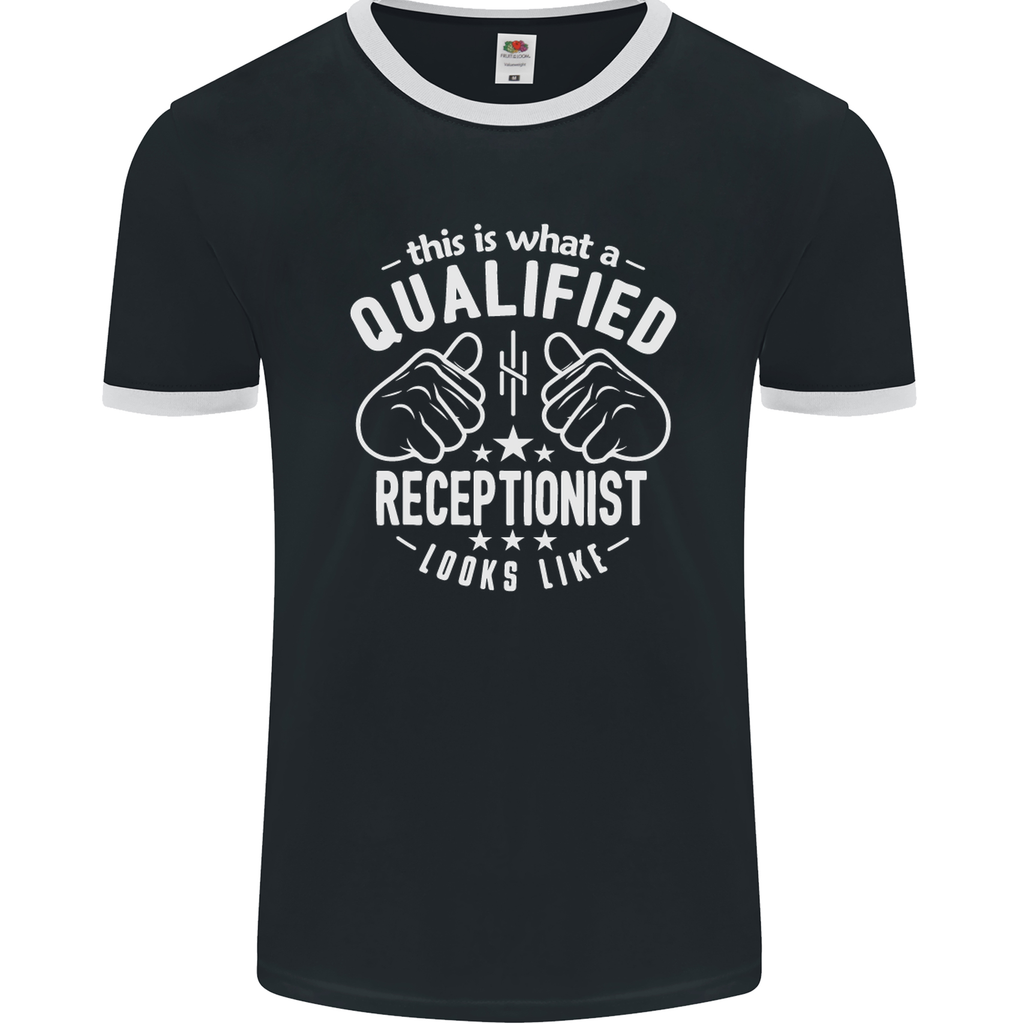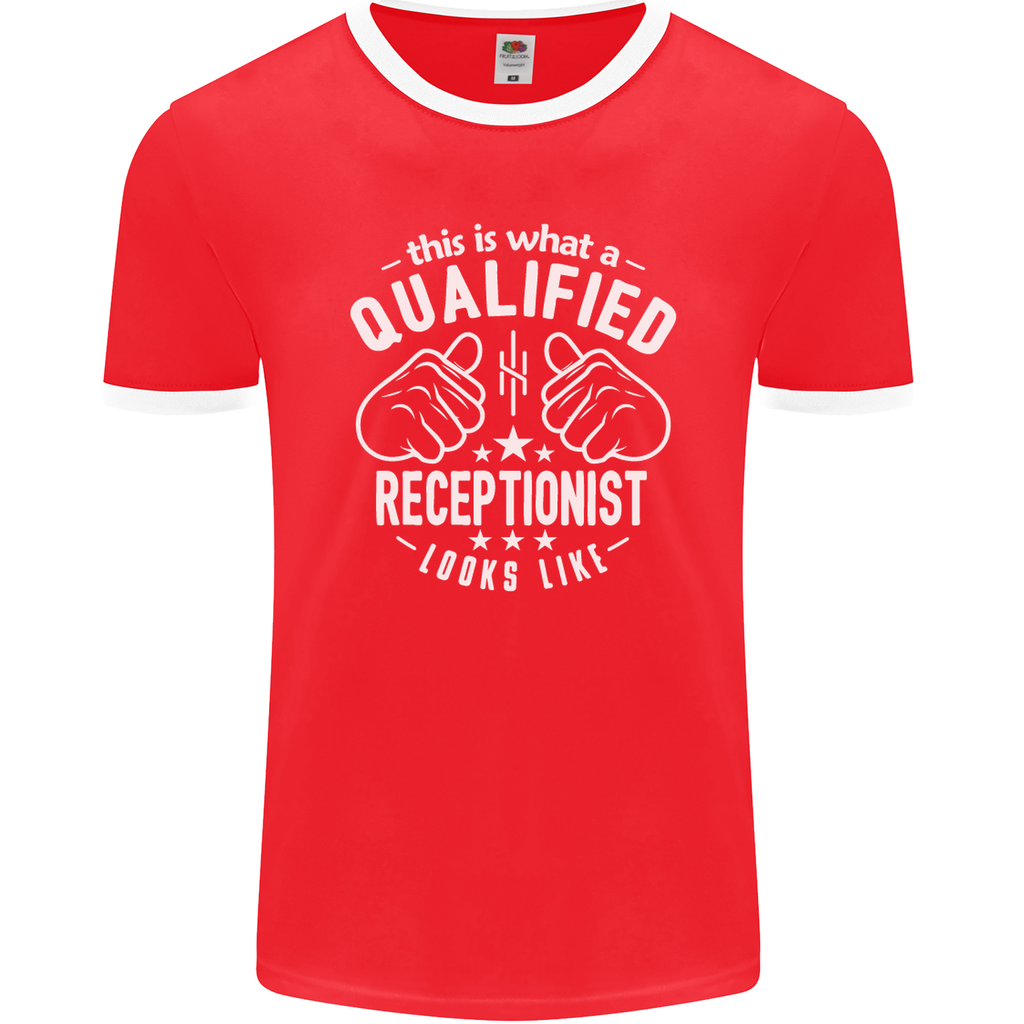 Embrace effortless cool with the "A Qualified Receptionist Looks Like Mens Ringer T-Shirt FotL." Made for the modern man who values both comfort and style, this tee is a must-have staple for any wardrobe.