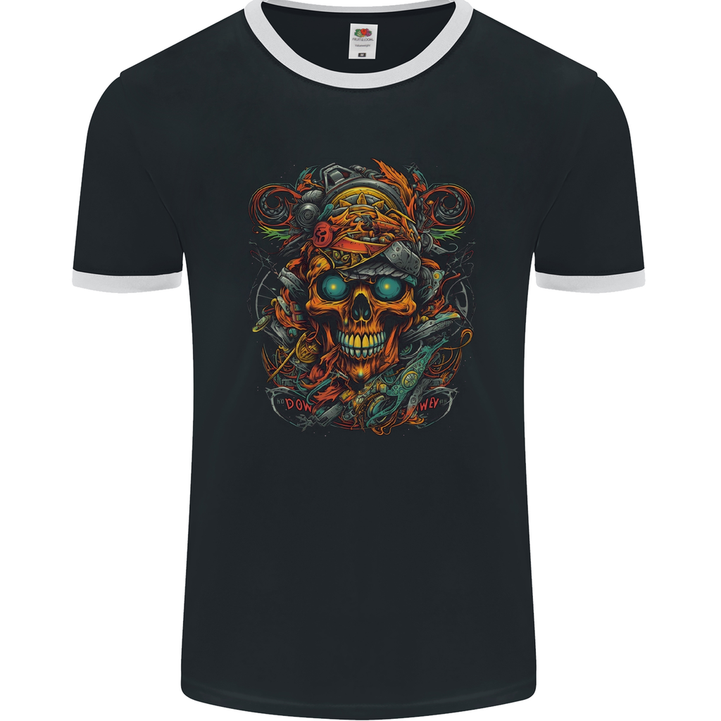 Embrace your inner pirate with the A Twisted FUBAR Skull Demon Pirate Mens Ringer T-Shirt from FotL. Let your rebellious spirit shine through with this bold and edgy design that will make you stand out from the crowd.