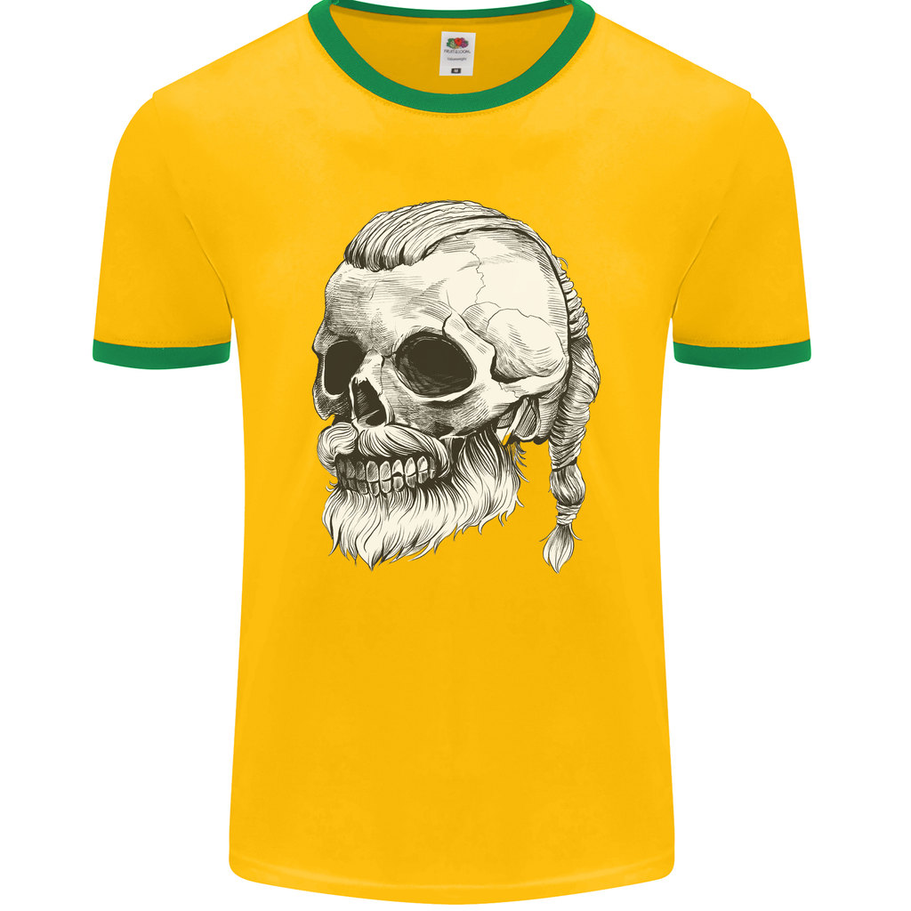 Make a bold fashion statement and stand out from the crowd with the Viking Skull Mens Ringer T-Shirt. Whether you're a fan of Norse mythology or simply appreciate distinctive and stylish clothing, this t-shirt is sure to become a staple in your wardrobe.