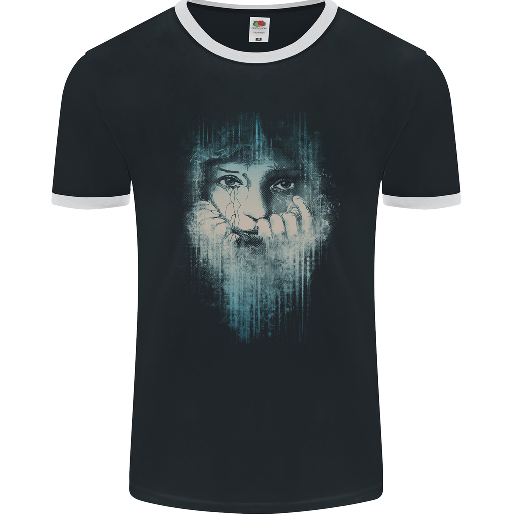 Crafted with care and precision, this ringer t-shirt is a blend of comfort and style. The soft fabric caresses your skin, ensuring all-day wearability without compromising on fashion. The vibrant design featuring an abstract art woman adds a touch of avant-garde chic to your wardrobe.