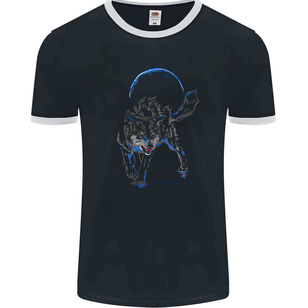 Abstract Wolf With the Moon Werewolf Lycan Mens Ringer T-Shirt FotL