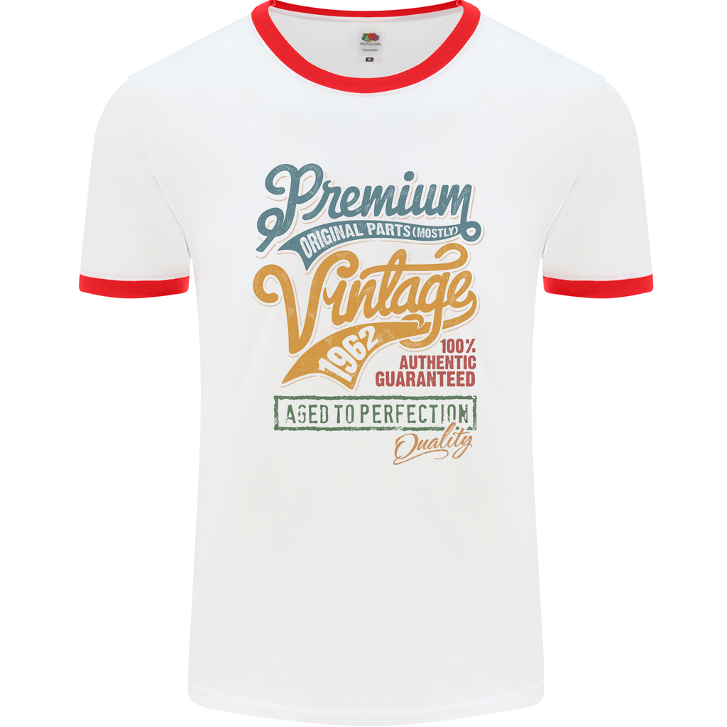 The vintage-inspired ringer design features contrasting trim around the collar and sleeves, providing a classic yet trendy vibe. The eye-catching print highlights the year 1962, making it a standout piece that sparks conversations and nostalgia. Whether you're enjoying a birthday party, a casual gathering, or simply lounging at home, this T-shirt is made to impress.