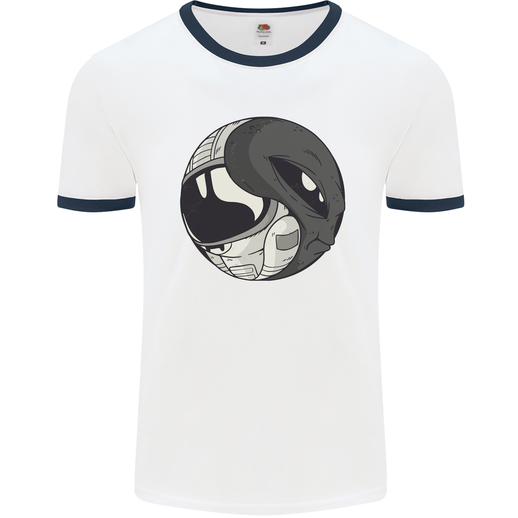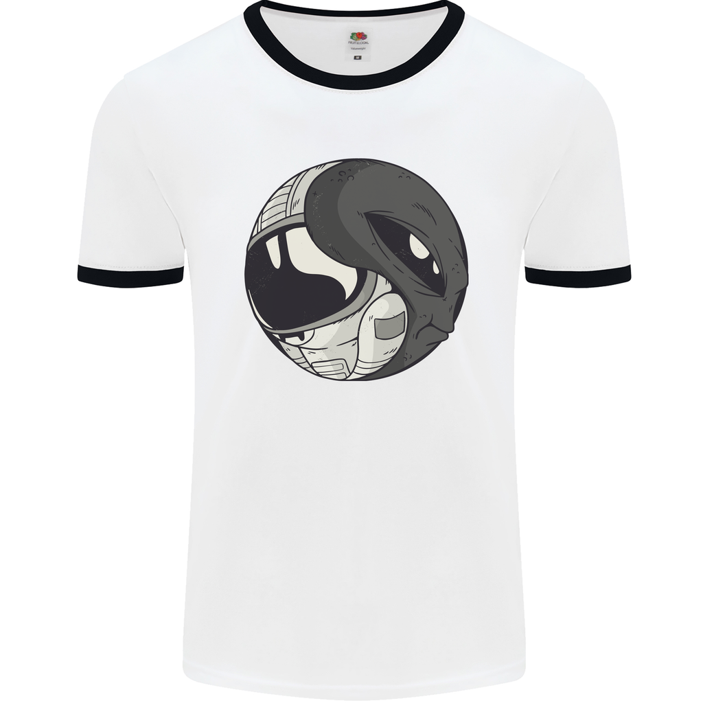 Welcome to a cosmic journey with our Alien Astronaut Yin Yang Space UFO Men's Ringer T-Shirt! This unique and eye-catching design will surely make you stand out in style.