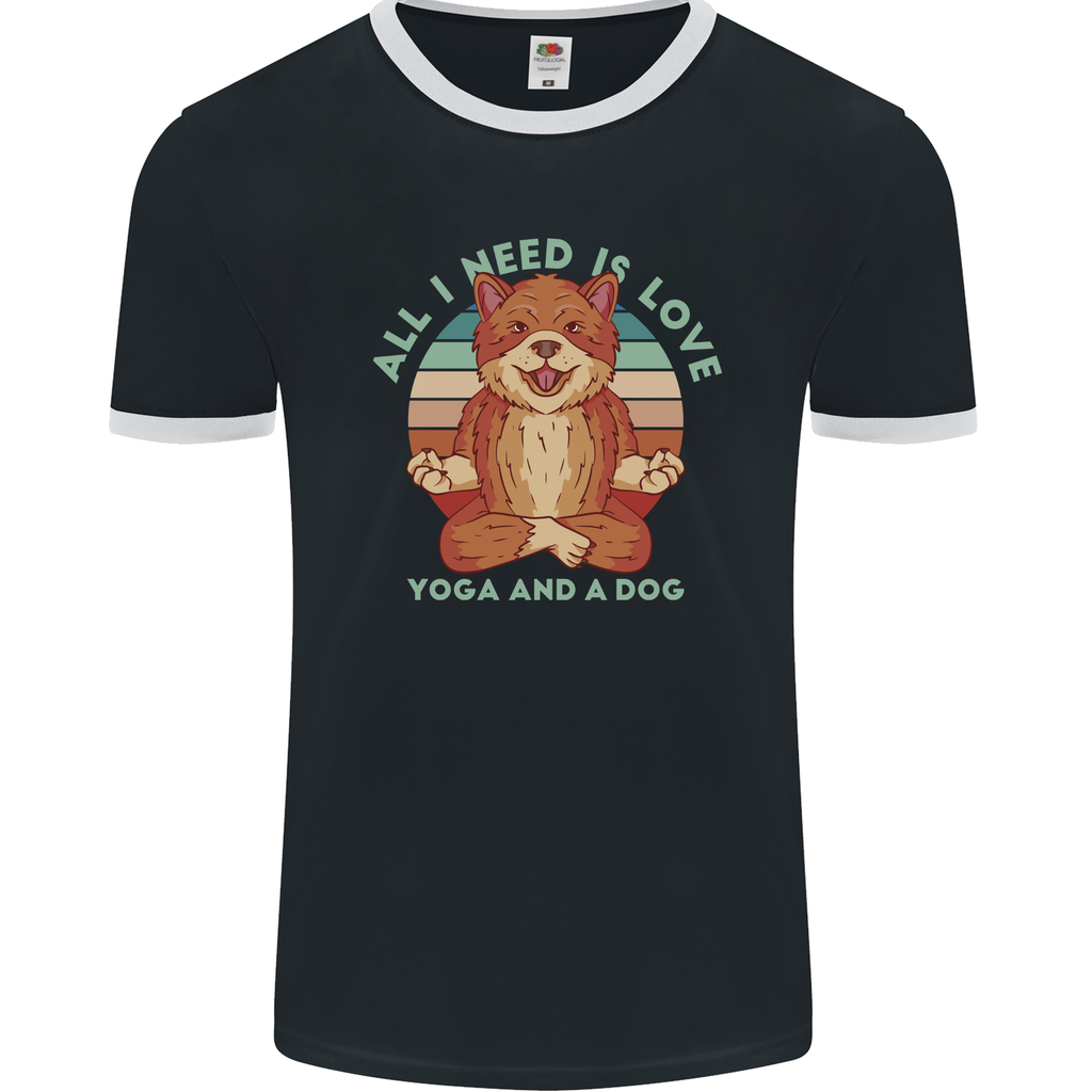 All I Need is Love Yoga and a Dog Funny Mens Ringer T-Shirt FotL