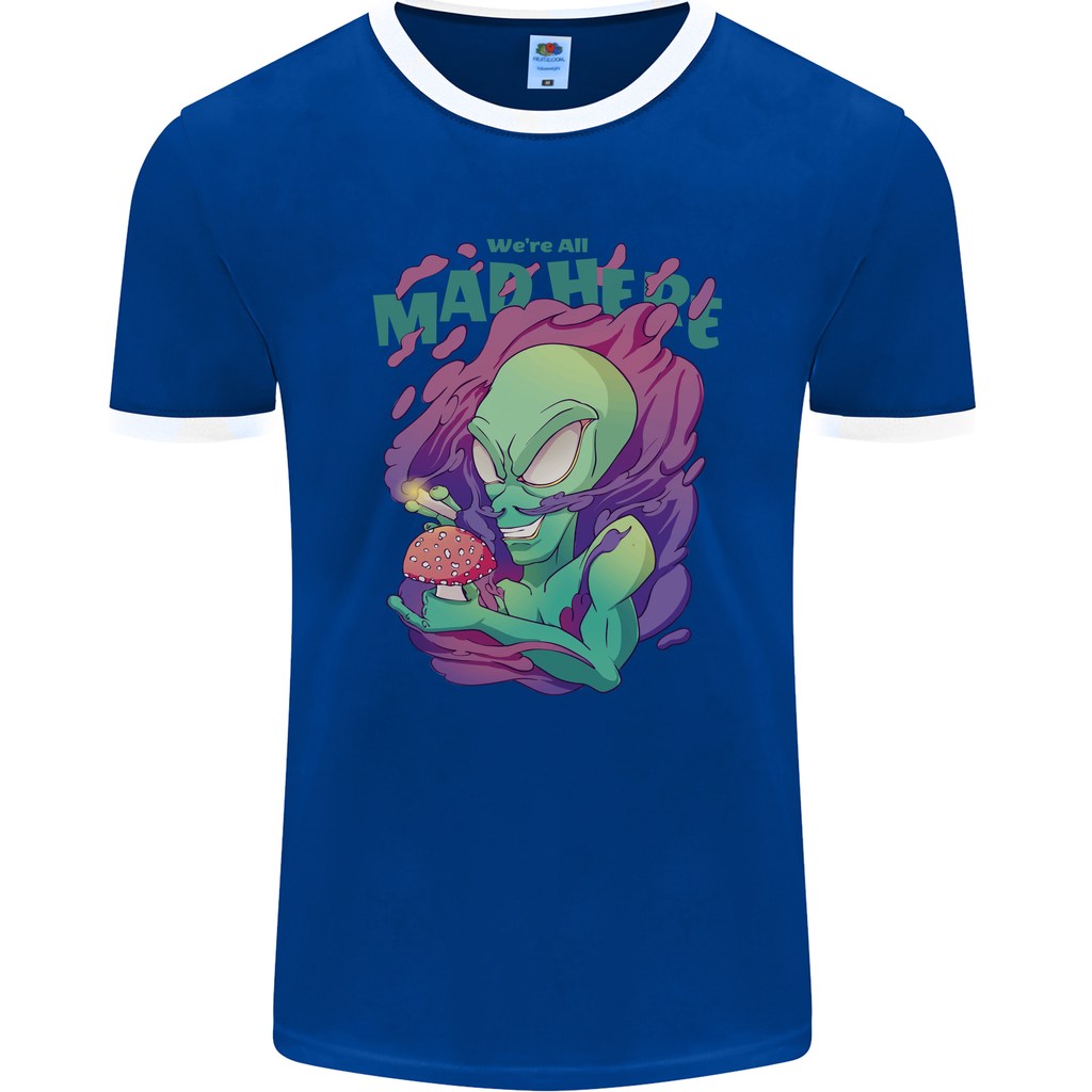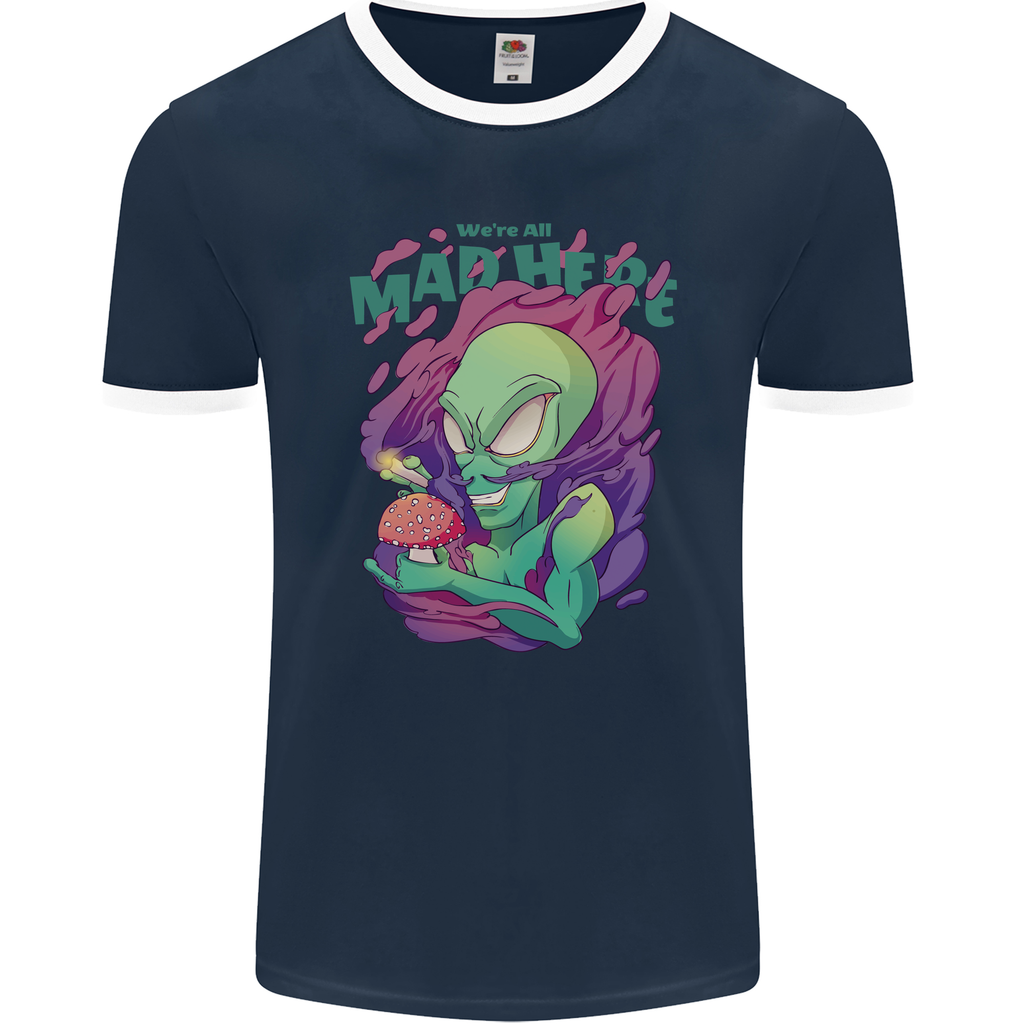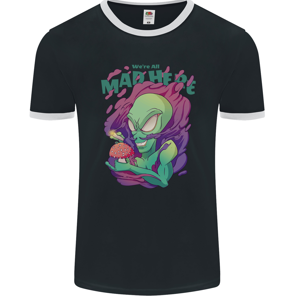 Embrace your inner eccentricity and let your style reflect your personality with the All Mad Here Alien Magic Mushrooms Mens Ringer T-Shirt by FotL. Step into a world where the ordinary meets the extraordinary, and make a statement that is uniquely you.