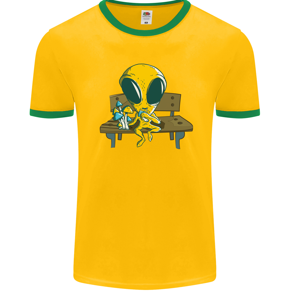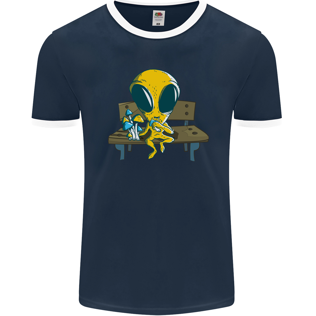 Elevate your casual wear collection with a dash of mystique and eccentricity. Stand out boldly, be unapologetically you, and let this Alien Eating Magic Mushrooms LSD Men's Ringer T-Shirt by FotL be your gateway to sartorial experimentation and cosmic allure.