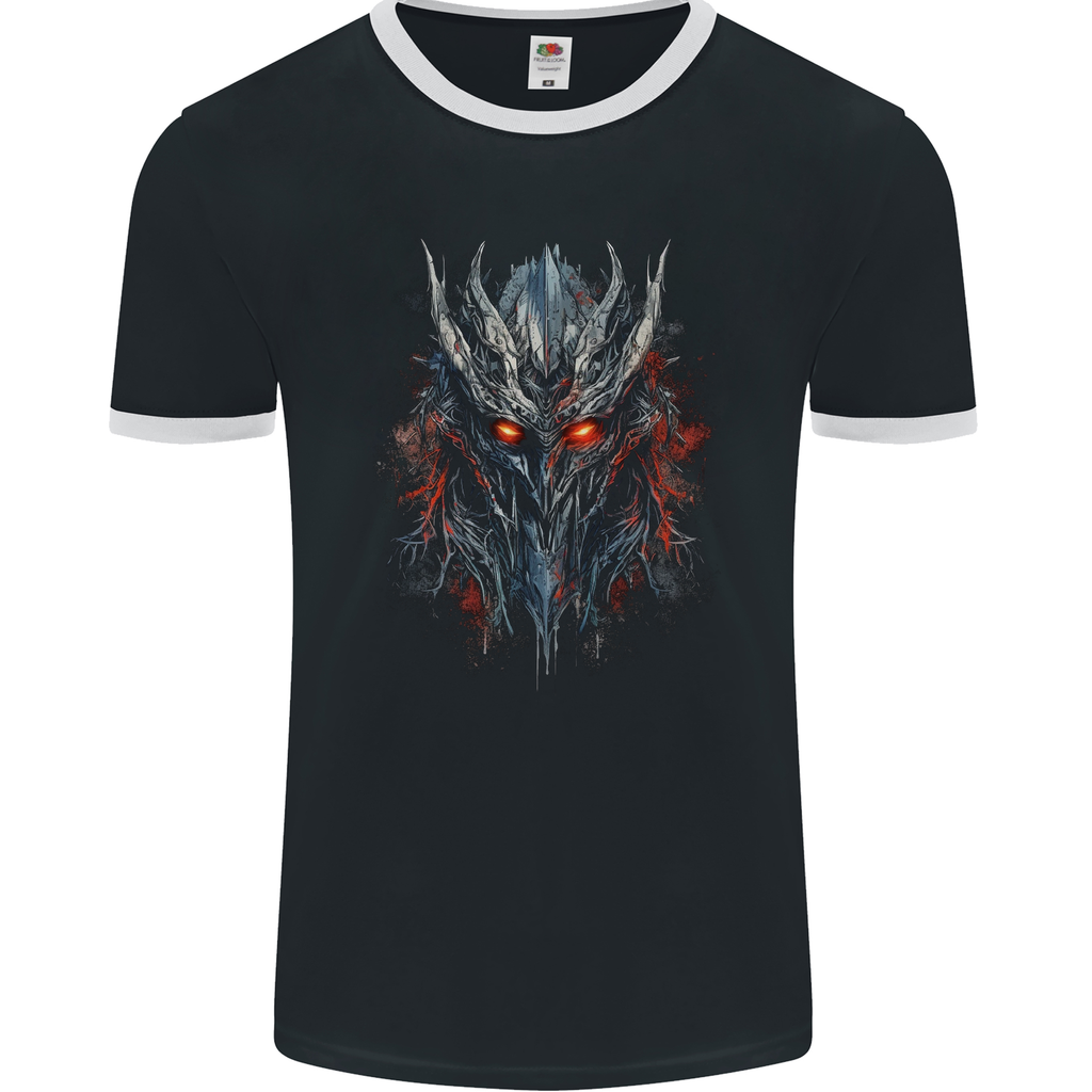 Welcome to the dark side of fashion with this mesmerizing Evil Sauron Mask Demon Mens Ringer T-Shirt by FotL. Let your inner darkness shine through with this bold, statement piece that is sure to turn heads wherever you go.
