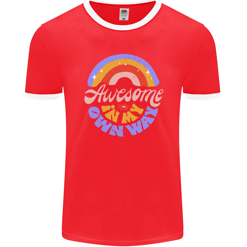 Welcome to our collection of "Awesome in My Own Way" different autistic men's ringer t-shirts by FotL. Express your unique style with this distinctive shirt designed for those who embrace their individuality.