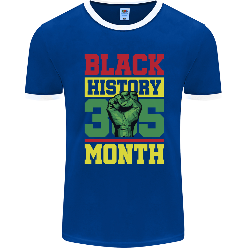 Featuring a classic ringer style design with a contrasting neckline and sleeve cuffs, this tee exudes retro vibes while delivering a powerful message. The striking "Black History Month Lives Matter" print on the front boldly declares your stance on equality and justice.