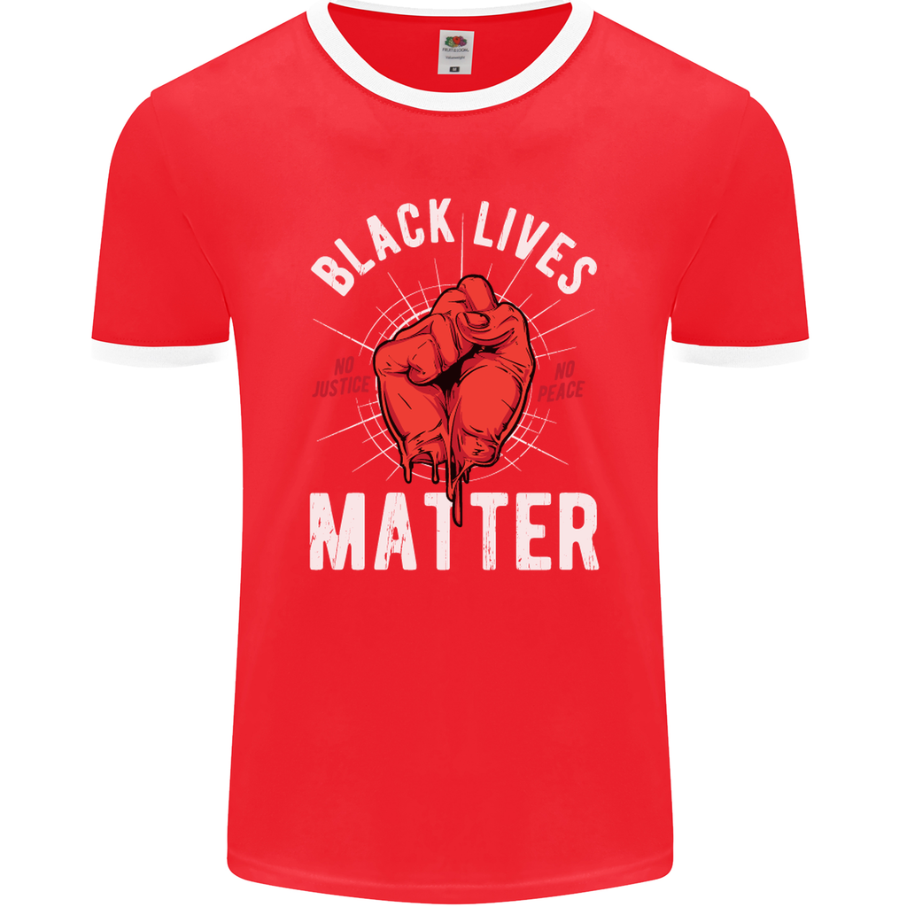 Spread awareness and spark important conversations with the Black Lives Matter Men's Ringer T-Shirt. Join the movement towards inclusivity and equality while showcasing your impeccable style and values.