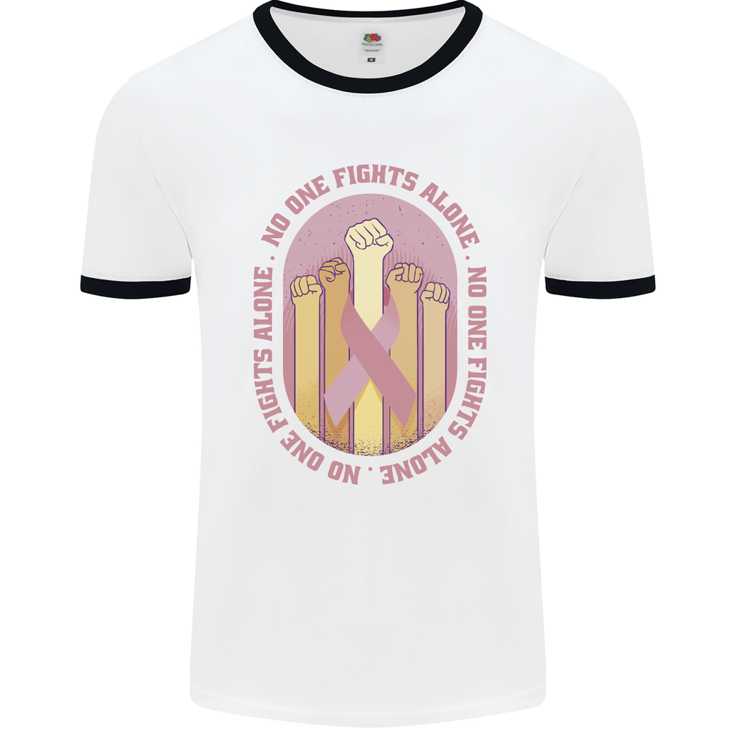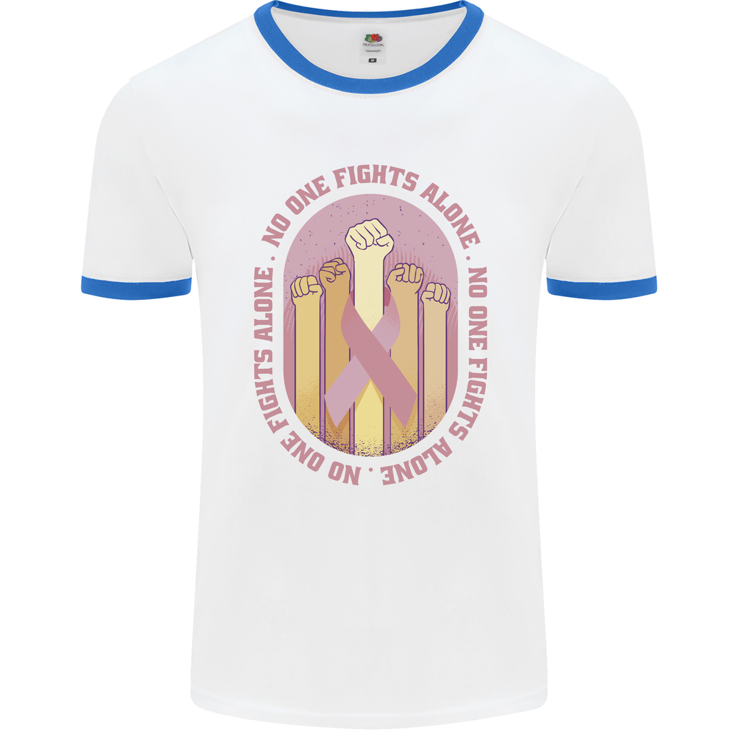 When you choose the Breast Cancer Awareness Fights Alone Men's Ringer T-Shirt, you're not only enhancing your wardrobe but also showing your unwavering support for those affected by breast cancer.