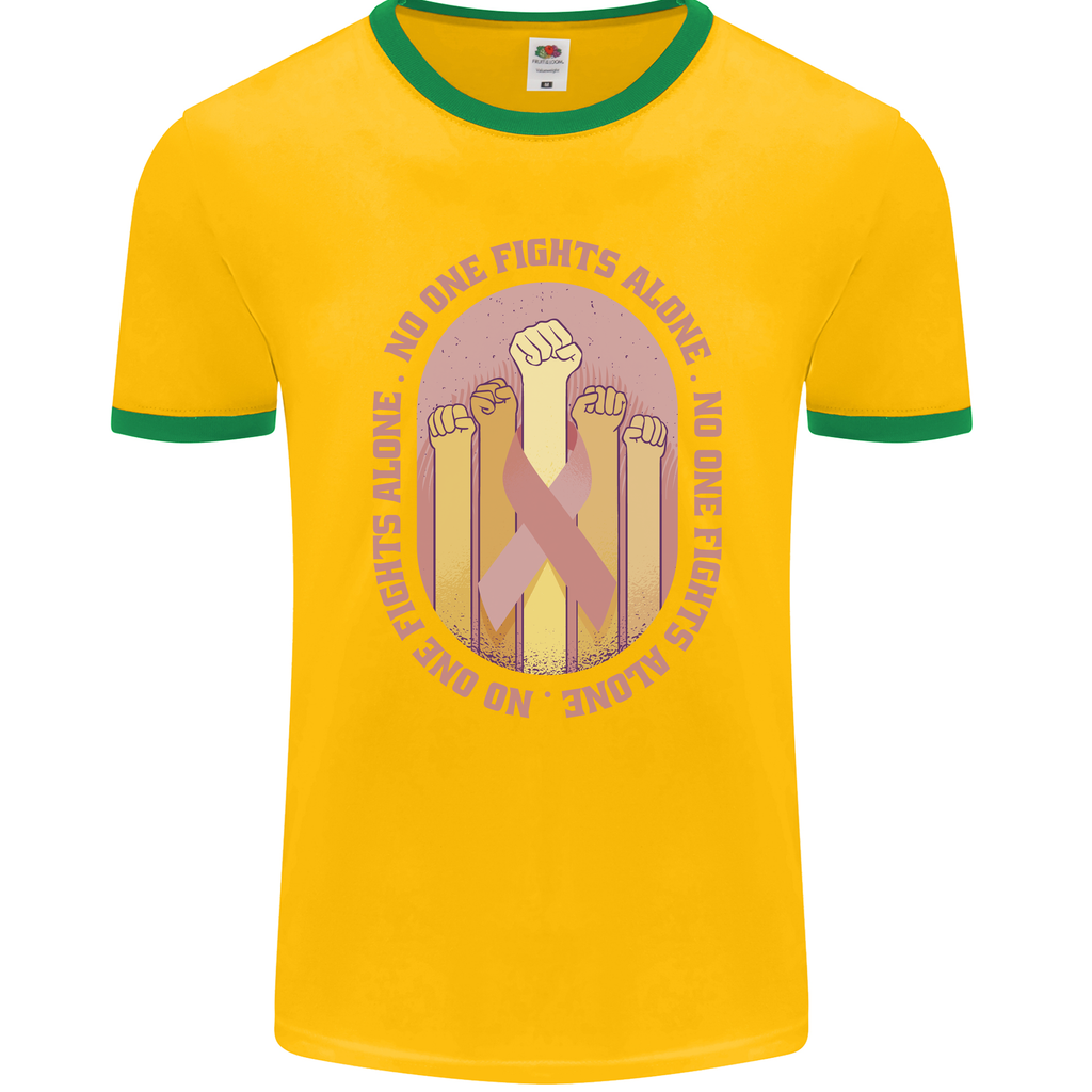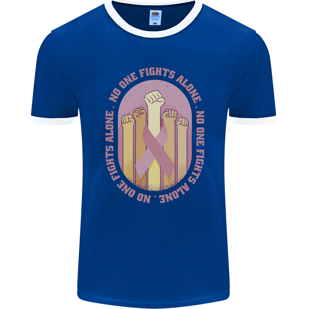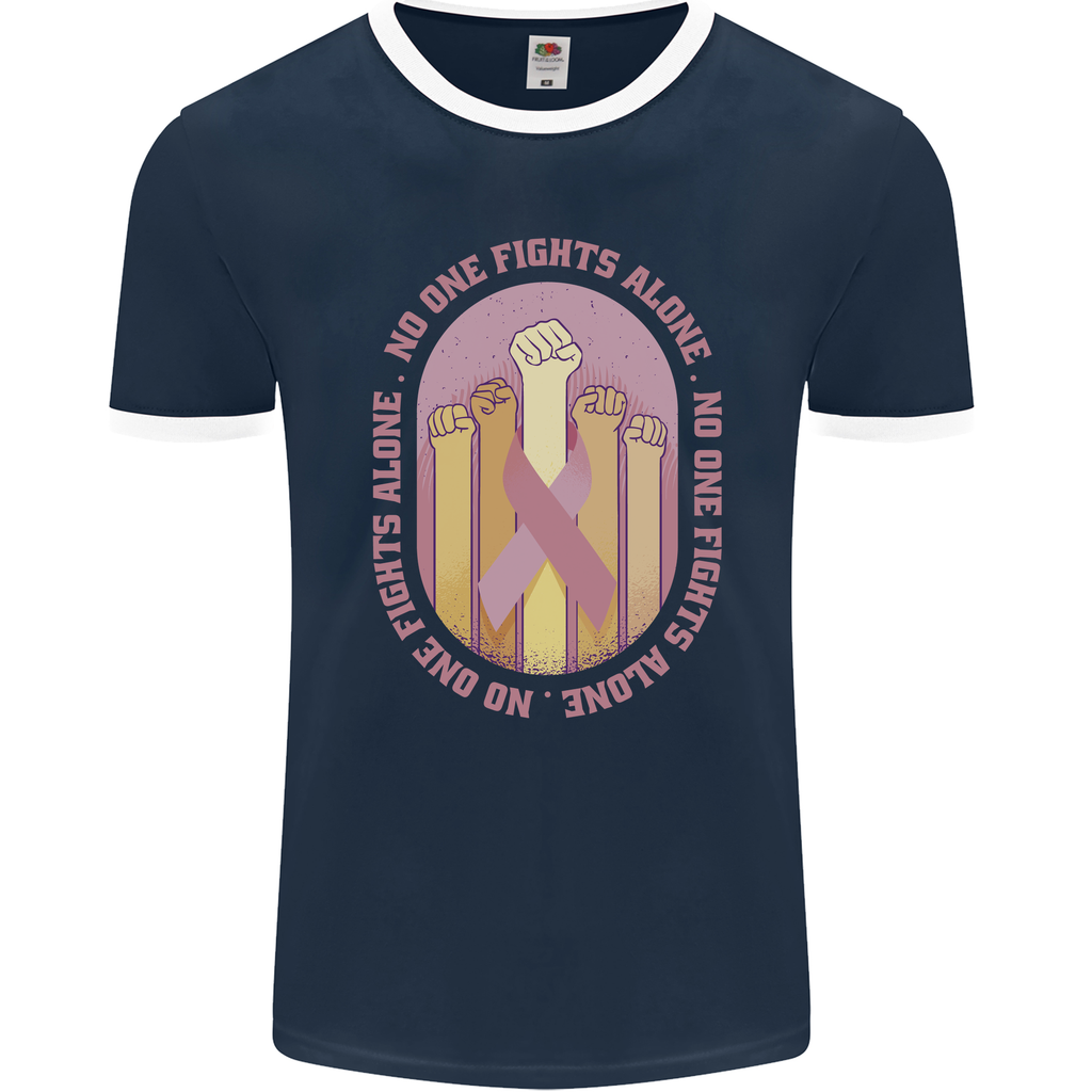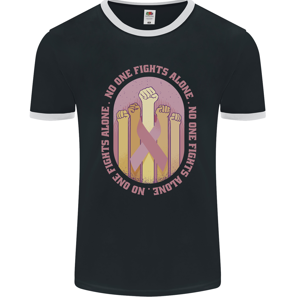 Embrace the fight against breast cancer with our exclusive Breast Cancer Awareness Fights Alone Men's Ringer T-Shirt by FotL. This stylish and meaningful design is not just a piece of clothing; it's a statement of solidarity and support for those battling breast cancer.