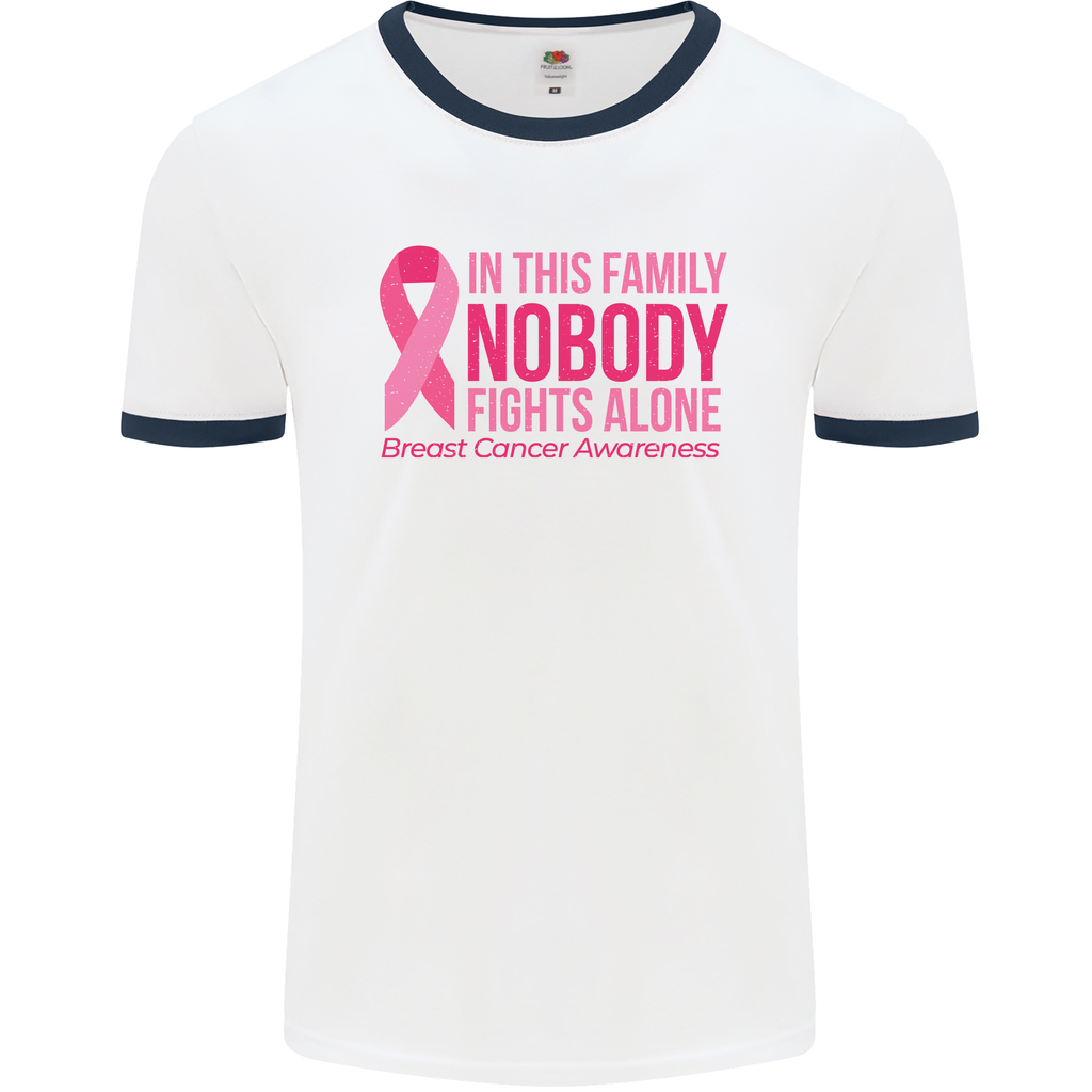Elevate your style with a meaningful statement in support of Breast Cancer Awareness with our "Nobody Fights Alone" Men's Ringer T-Shirt. Crafted with comfort and a cause in mind, this tee is more than just a piece of clothing – it's a symbol of solidarity and strength. Show your support for those fighting the battle and raise awareness wherever you go.