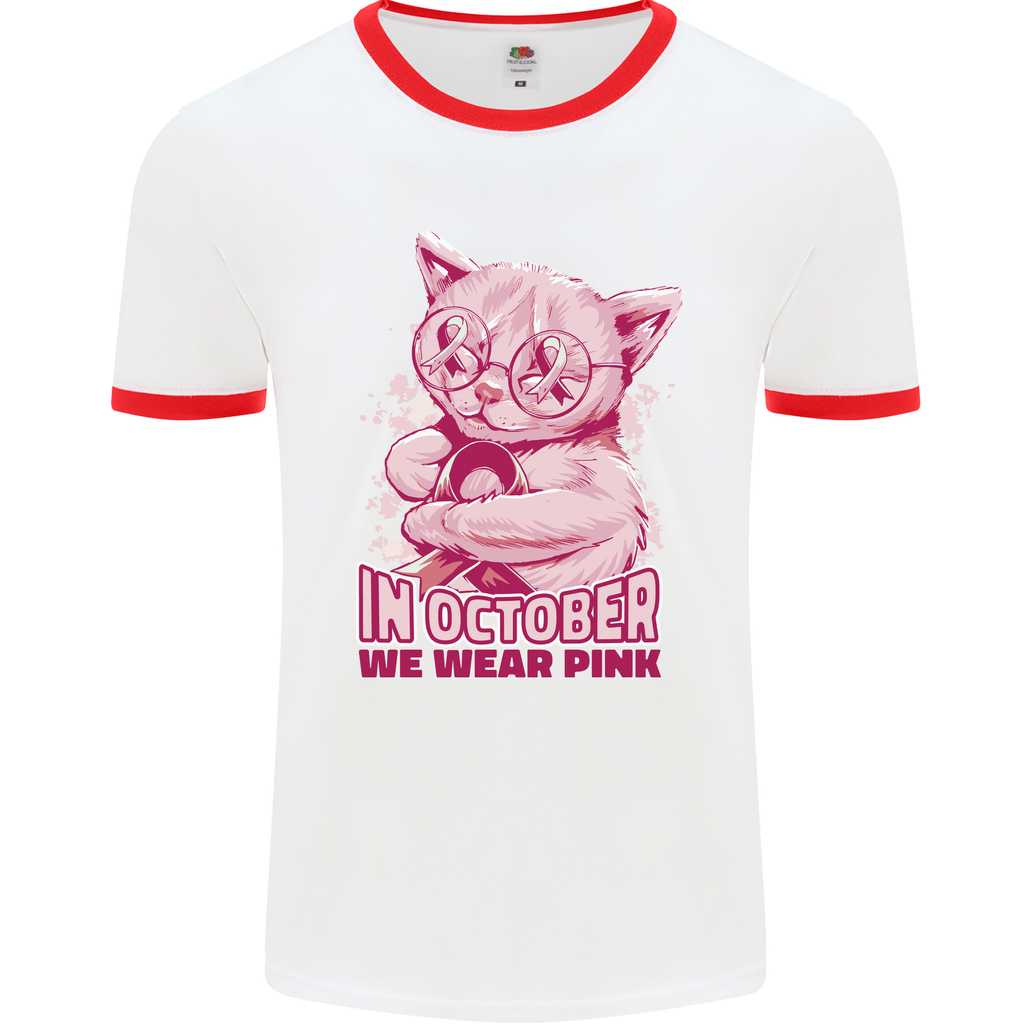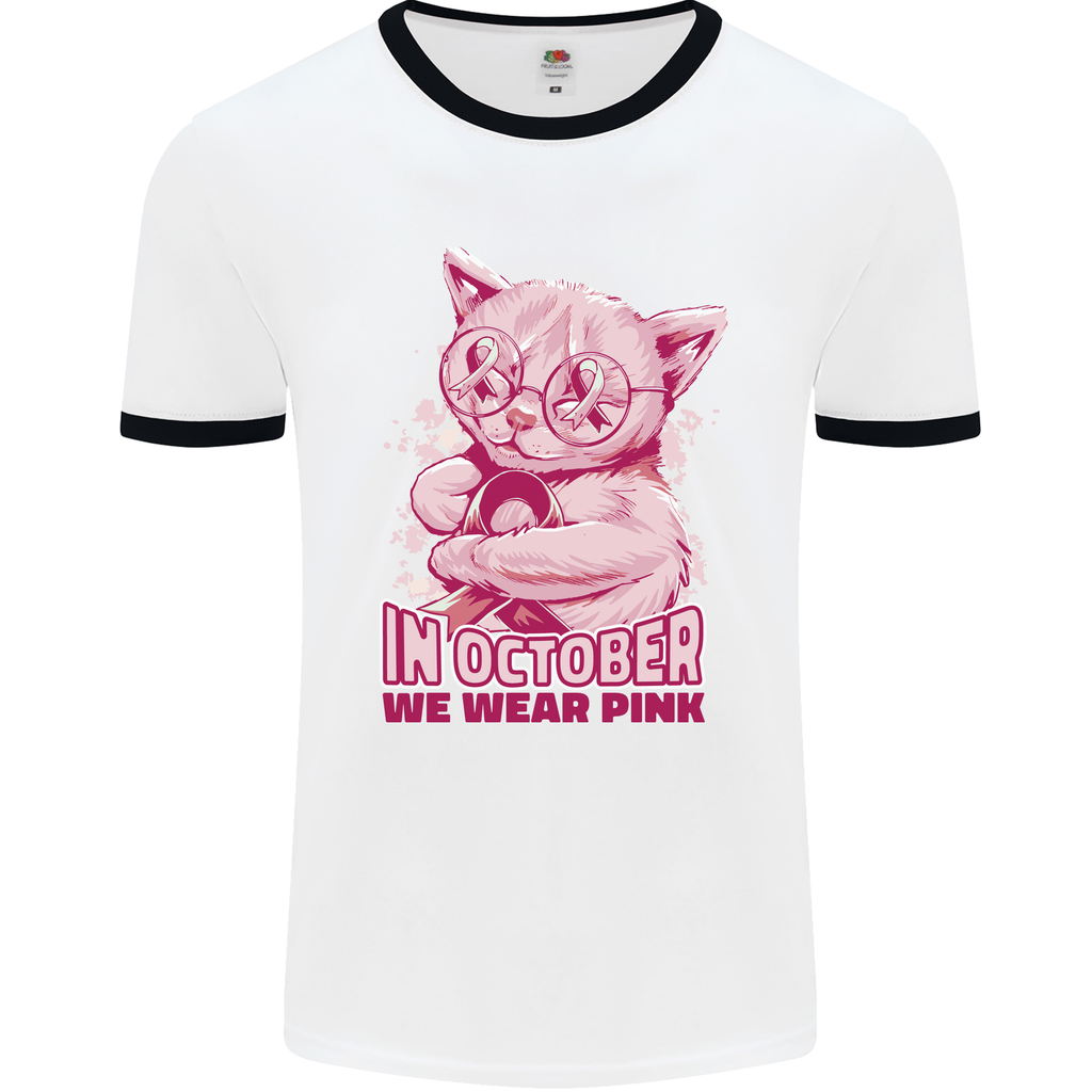 Welcome to the October Cat Mens Ringer T-Shirt, a symbol of support for Breast Cancer Awareness. This unique t-shirt is not just a garment, but a statement of solidarity during the important month of October.