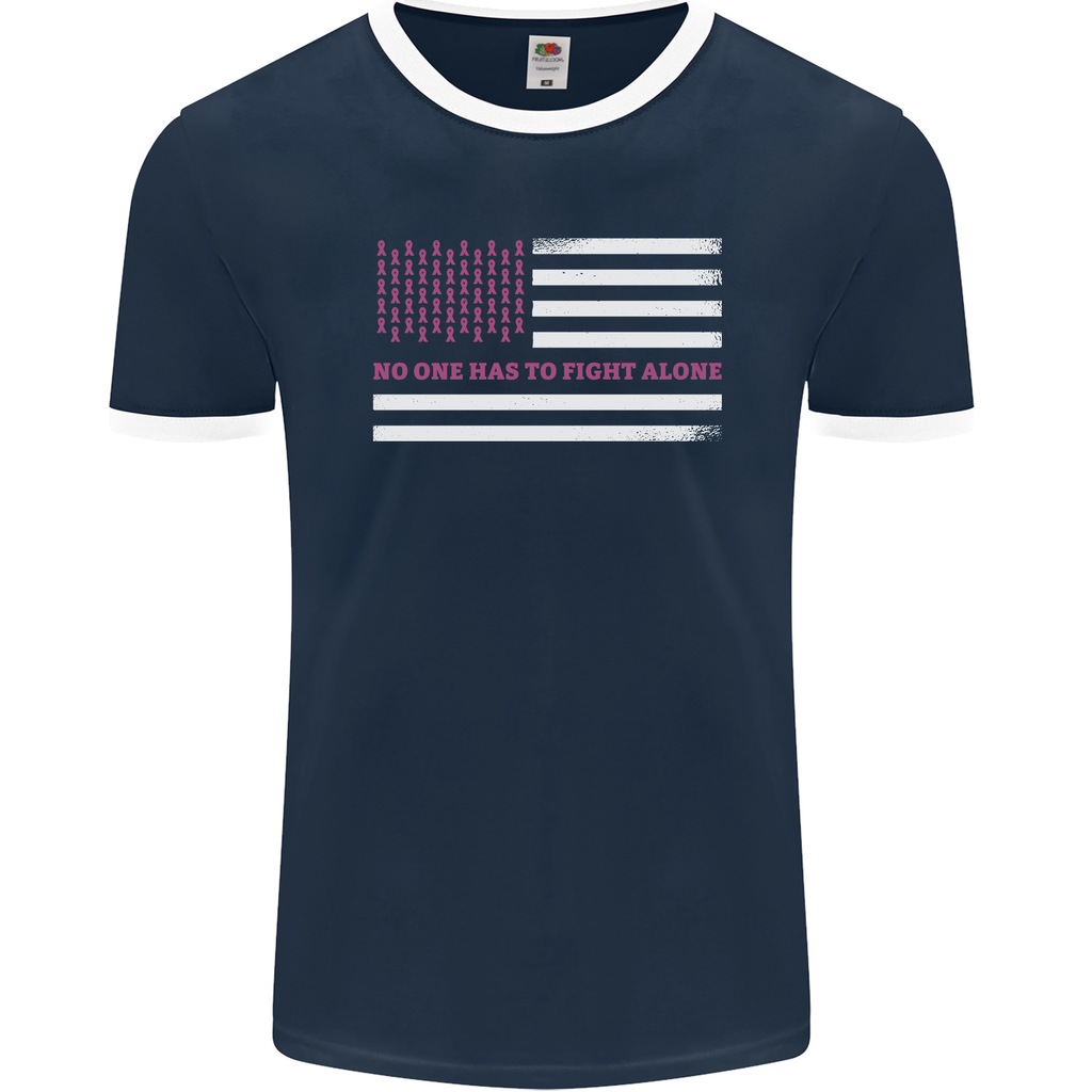 Make a meaningful impact with your fashion choices. Join the movement for breast cancer awareness with our inspiring USA flag men's ringer t-shirt. Let your clothes reflect your values and contribute to a cause that matters.