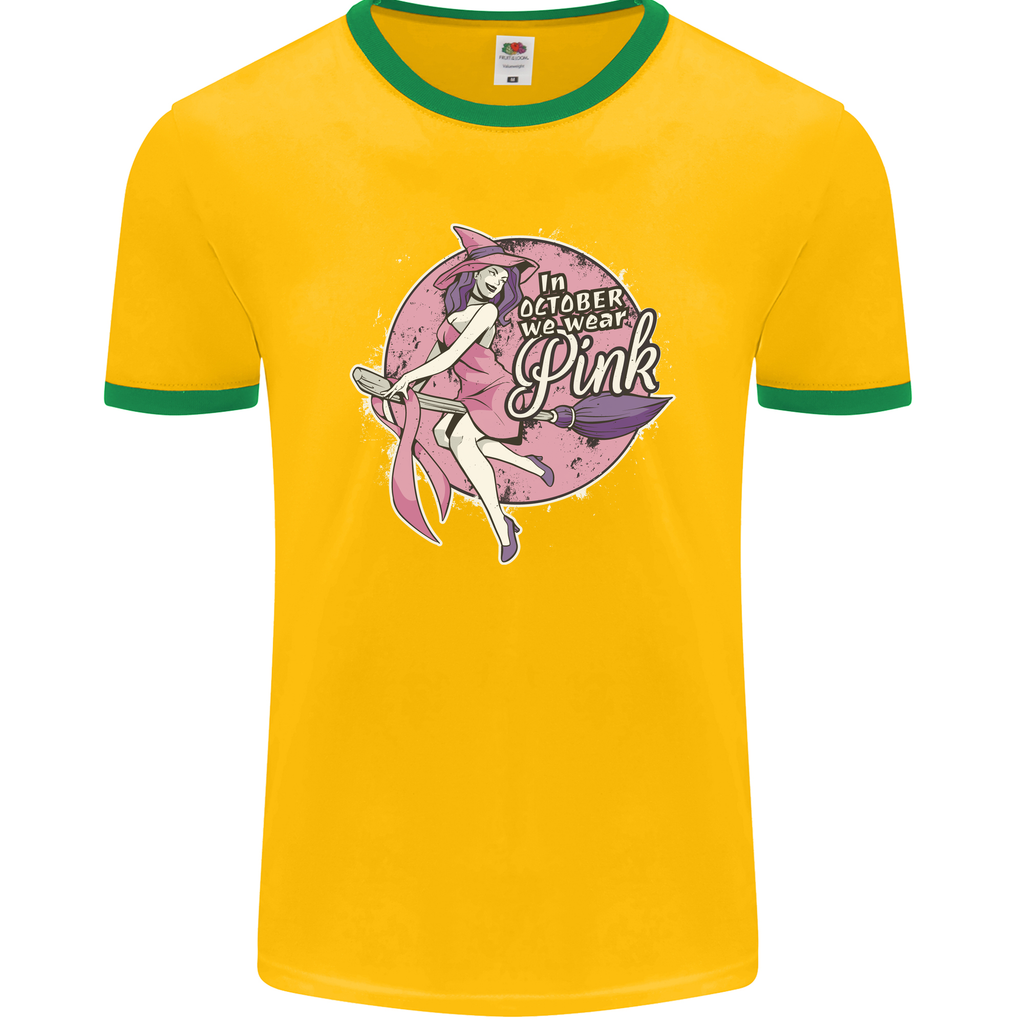 Step into the Halloween spirit with our Breast Cancer Awareness Witch Halloween Mens Ringer T-Shirt by FotL. This unique garment combines style and a powerful message, making it the perfect choice for the upcoming spooky season.