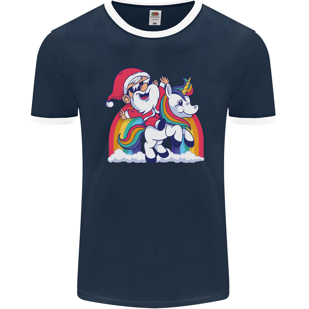 Christmas Santa Claus On a Unicorn Xmas Mens Ringer T-Shirt FotL