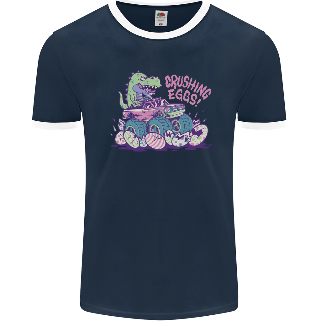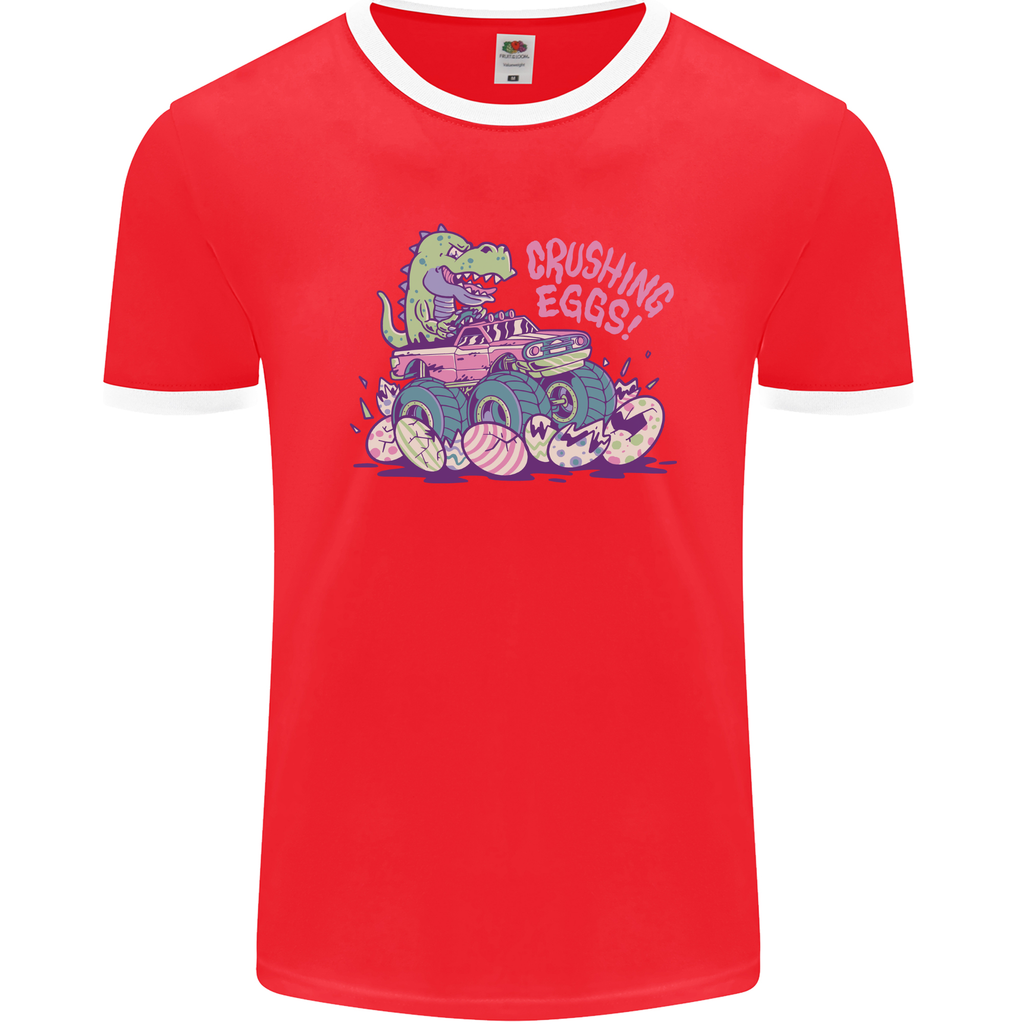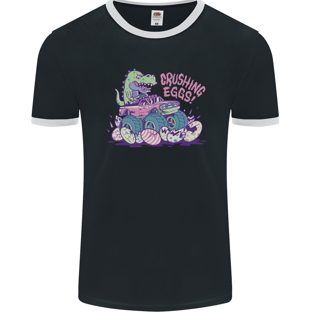 Unleash your inner dinosaur enthusiast this Easter with the Crushing Eggs Easter T-Rex Dinosaur Monster Truck Mens Ringer T-Shirt from FotL. This eye-catching tee combines the excitement of dinosaurs with the thrill of monster trucks, making it a must-have for anyone looking to stand out during the festive season. Designed with comfort and style in mind, this ringer t-shirt is perfect for casual outings or Easter celebrations.