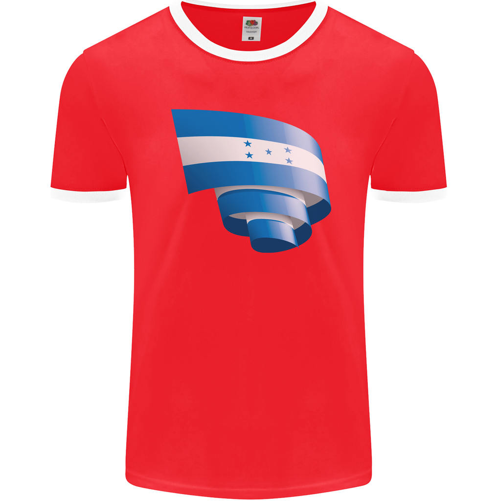 Welcome to the power-packed world of sports and style with our Curled Honduras Flag Honduran Day Football Mens Ringer T-Shirt FonTL!