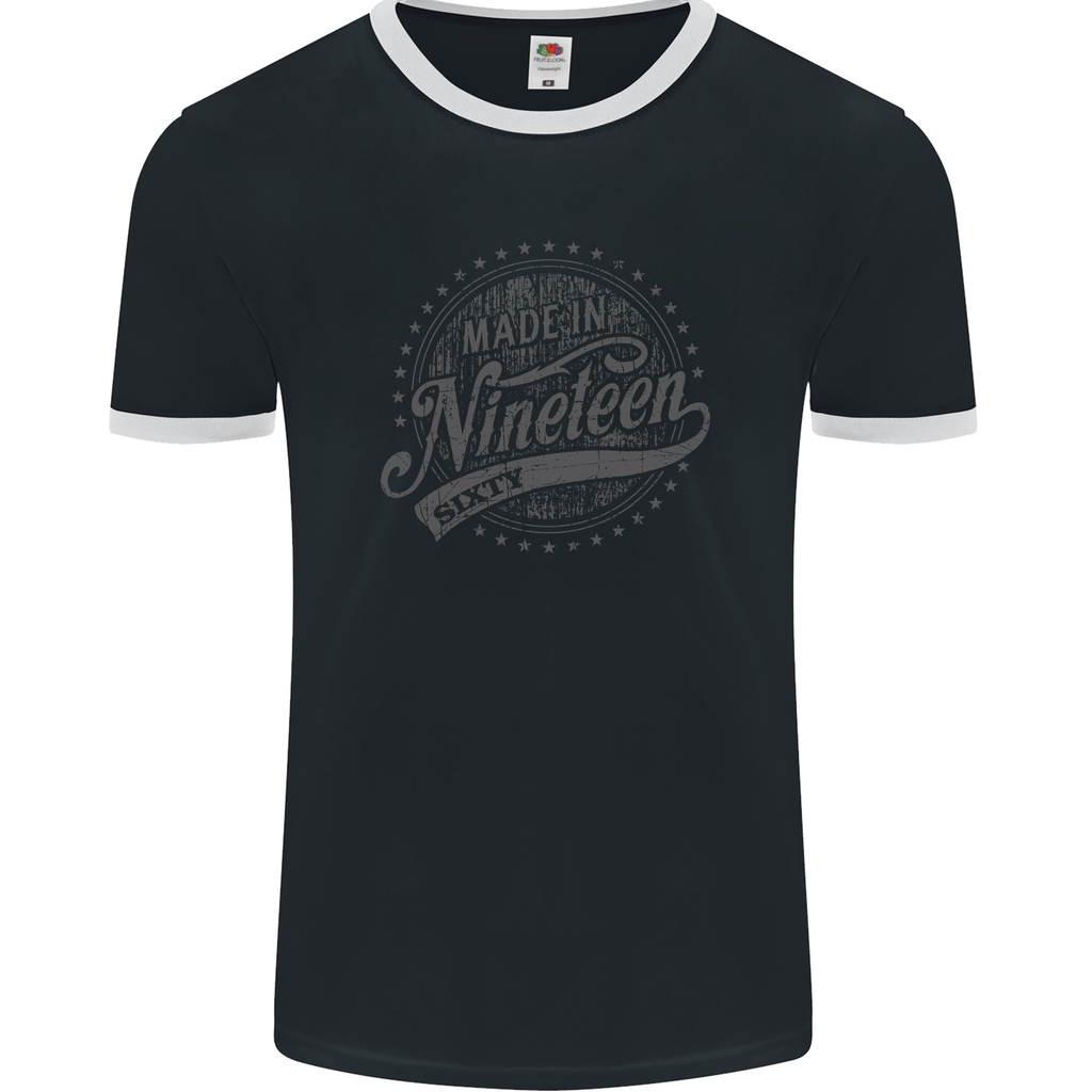Distressed 65th Birthday Made In 1960 Mens Ringer T-Shirt FotL Black/White