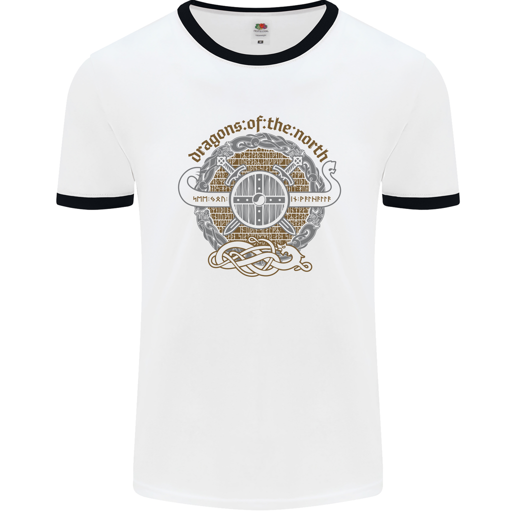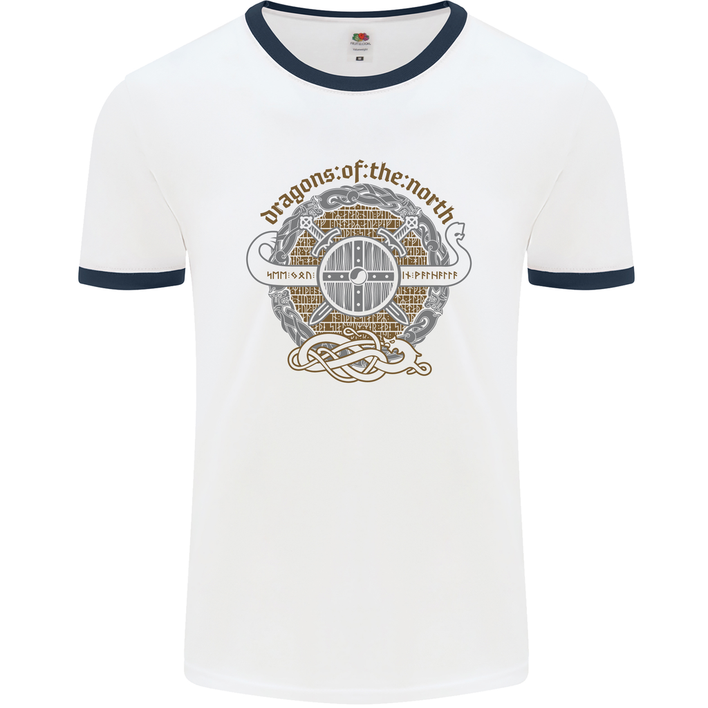 Welcome to the land of mighty Vikings and ancient Norse mythology with our Dragons North Viking Valhalla Thor Odin Men's Ringer T-Shirt! This remarkable piece brings together the power of the Norse gods and the fearless spirit of Viking warriors in a modern design that will surely make you stand out.