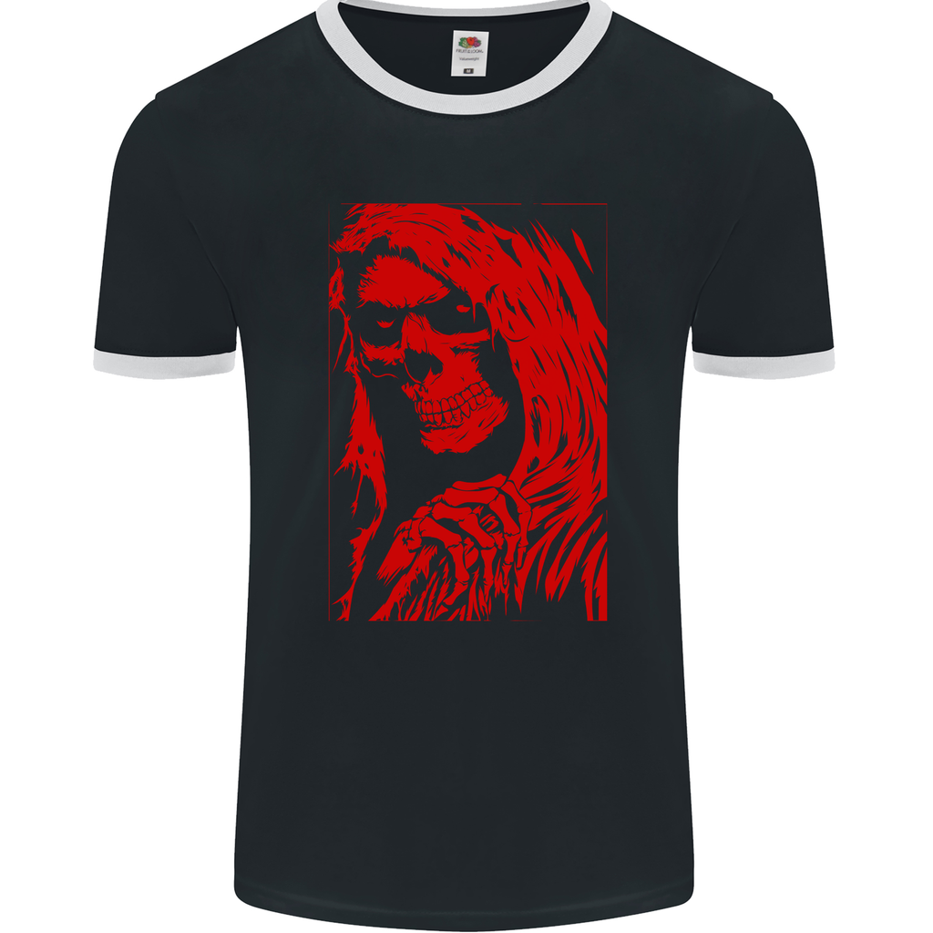 Welcome to the world of edgy and unique fashion with our Female Skull Grim Reaper Biker Motorcycle Men's Ringer T-Shirt by FotL. This statement piece combines style, attitude, and comfort to create a look that's sure to turn heads wherever you go.
