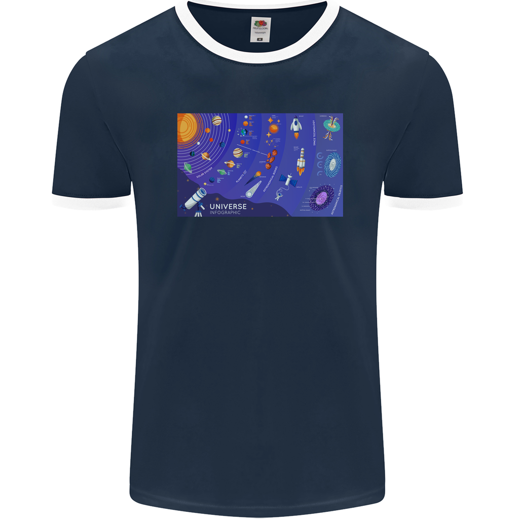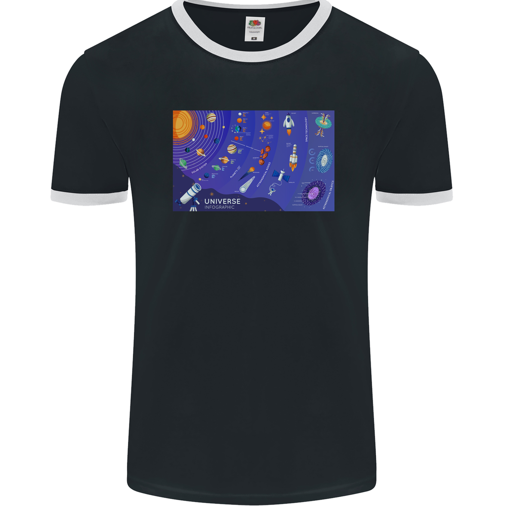 Whether you're a science enthusiast, a tech lover, or simply appreciate unique fashion, this Galaxy Infographic Space Technology Planets Men's Ringer T-Shirt is sure to elevate your outfit game to stellar heights. Let your imagination soar as you embark on a sartorial journey through the cosmos.