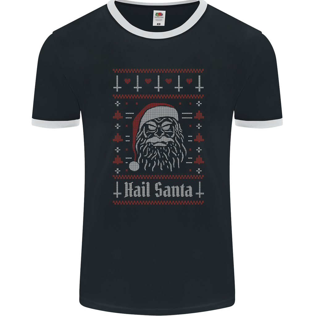 Whether you're looking to add a touch of dark humour to your festive wardrobe or simply enjoy turning tradition on its head, the Hail Santa Demonic Evil Anti-Christmas Xmas Men's Ringer T-Shirt is the perfect choice. Embrace the holiday season in your own rebellious way!