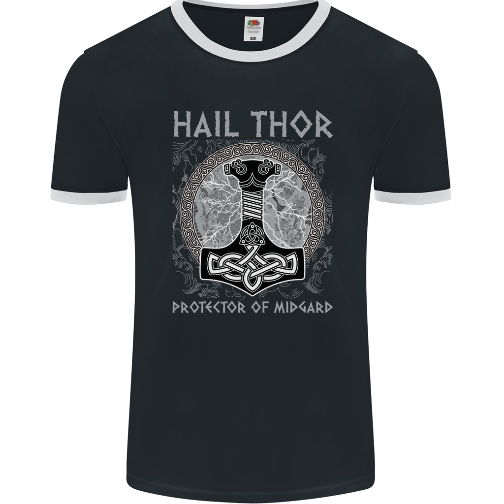 Welcome to the realm of Viking warriors and Norse mythology with the Hail Thor Protector of Midgard Viking Odin Mens Ringer T-Shirt by FotL. Embrace the spirit of bravery and protection with this striking tee that pays homage to the mighty God of Thunder.