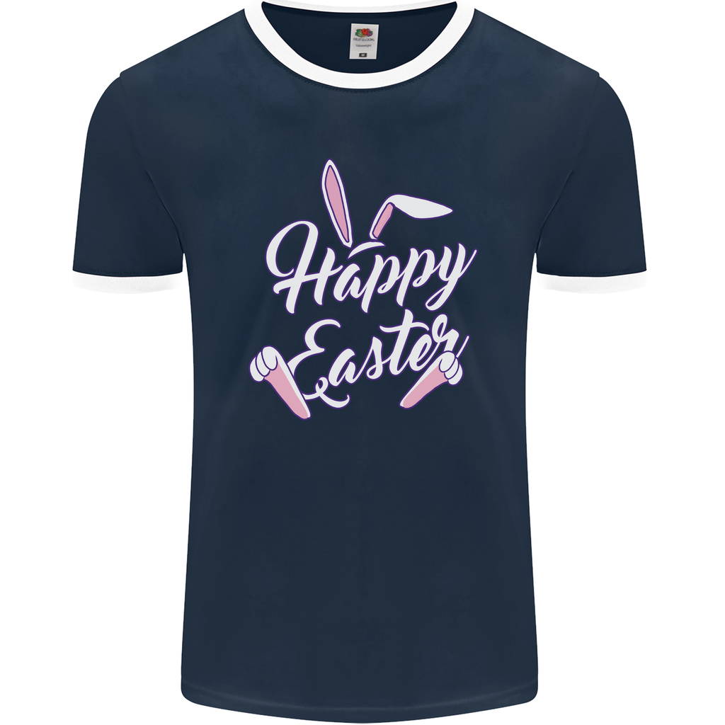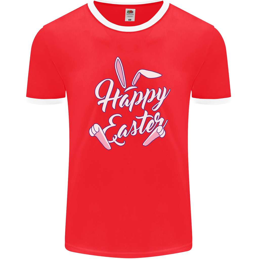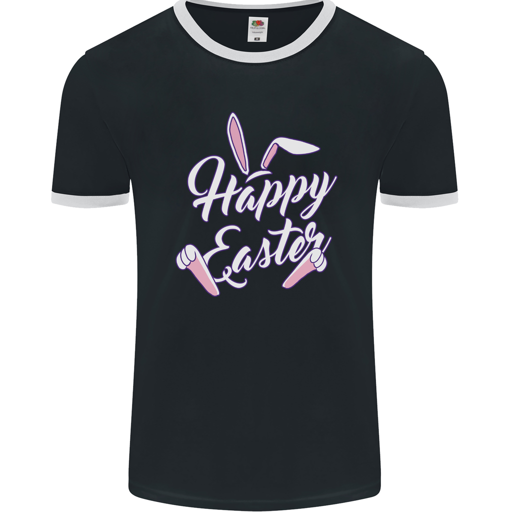 Welcome to a world of festive fun and style with the Happy Easter Cool Rabbit Ears and Feet Men's Ringer T-Shirt by Fruit of the Loom!