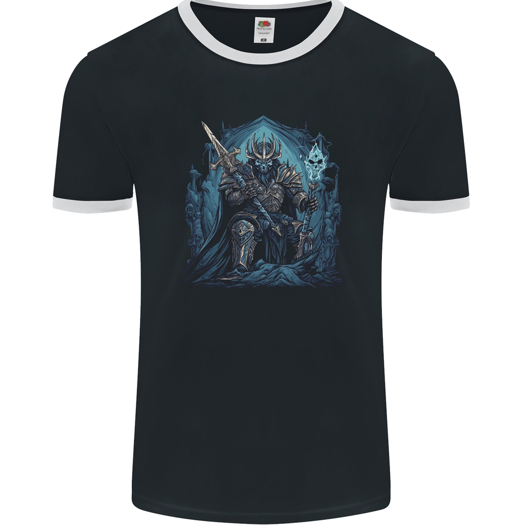Welcome to the realm of mystique and adventure with our Ice Cavern Fantasy Skull King Men's Ringer T-Shirt by FotL. Step into a world where majesty meets darkness, where the Skull King reigns supreme in an icy cavern of untold secrets.