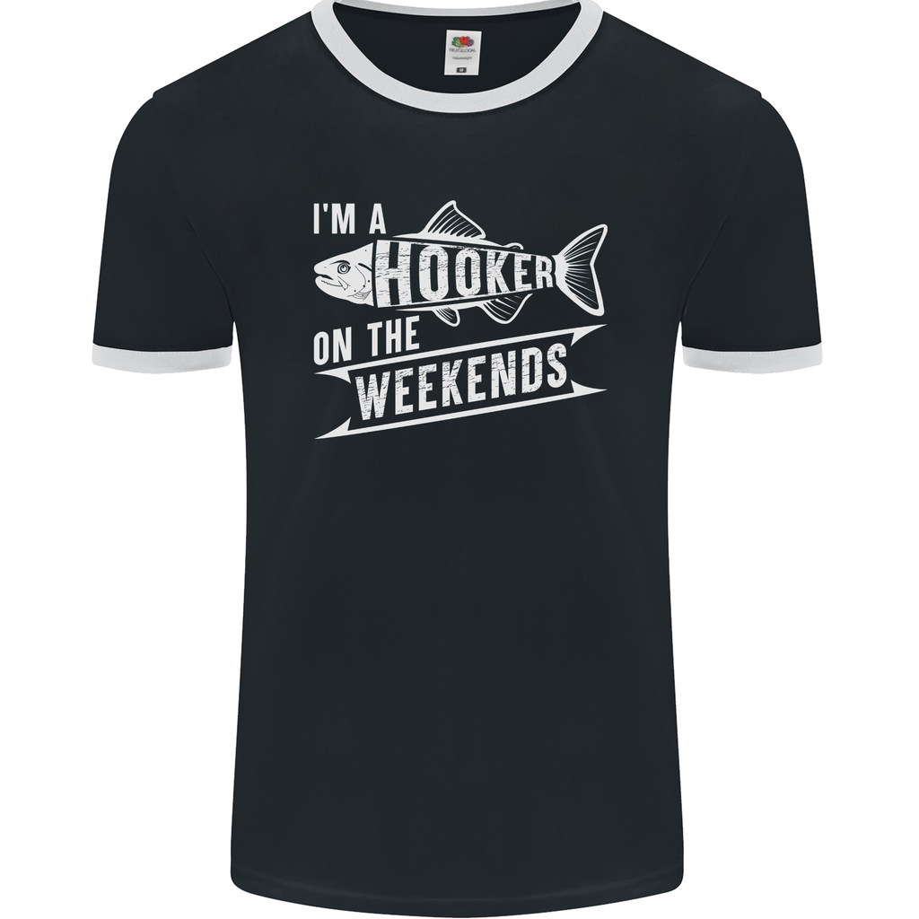 Make a splash this weekend with our "I'm a Hooker at the Weekends" Funny Fishing 2 Mens Ringer T-Shirt from Fruit of the Loom. This unique and humorous t-shirt is perfect for any angling enthusiast who loves to reel in some laughs along with their catch. Whether you're casting your line at the lake or spending a relaxed day with friends, this shirt will add a touch of fun to your fishing adventures.