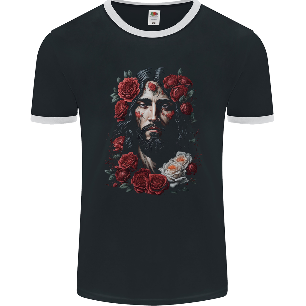 Embrace comfort and style with the Jesus Christ With Roses Mens Ringer T-Shirt by FotL. This striking piece combines quality craftsmanship with a unique design, perfect for those who appreciate the fusion of art and fashion.