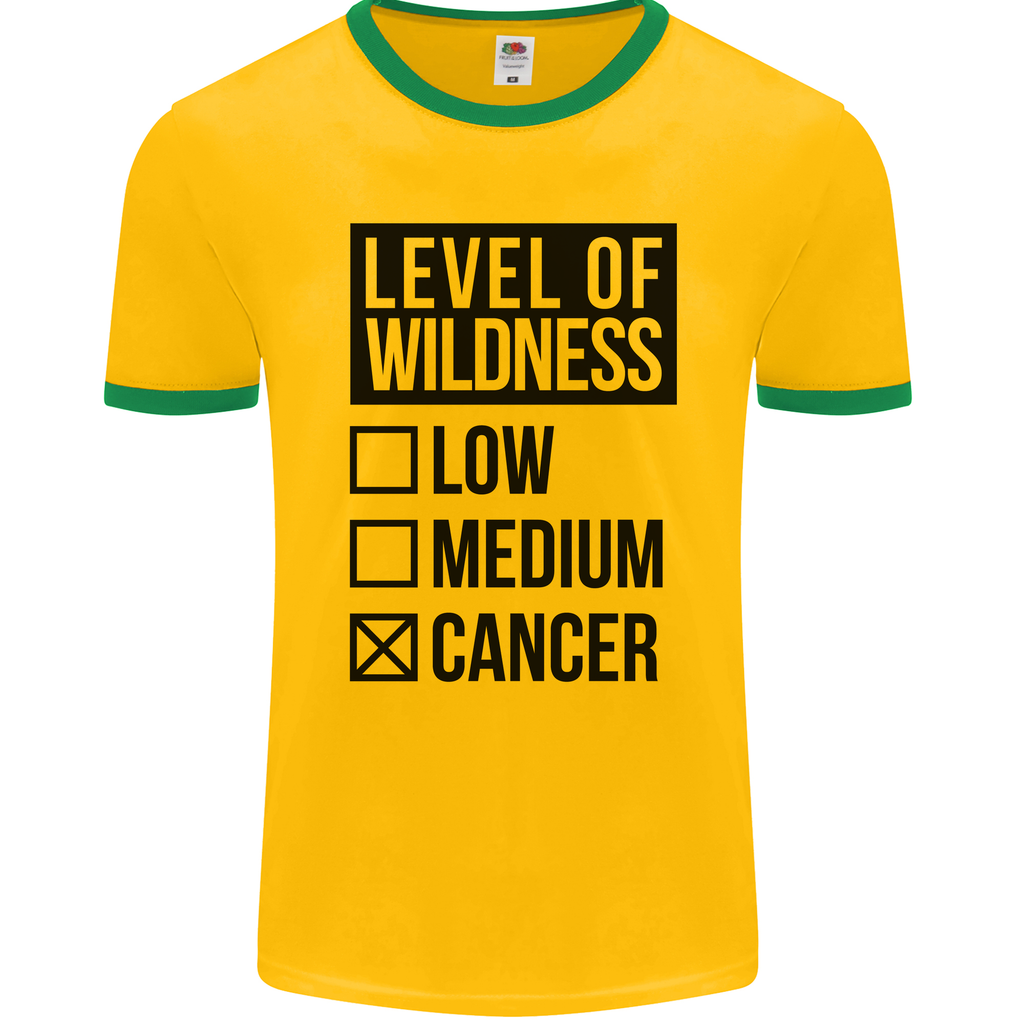 Welcome to the wild side with our Levels of Wildness Cancer Men's Ringer T-Shirt by FotL! Let your inner explorer and adventurer shine with this bold and stylish ringer tee that's perfect for making a statement wherever you go.