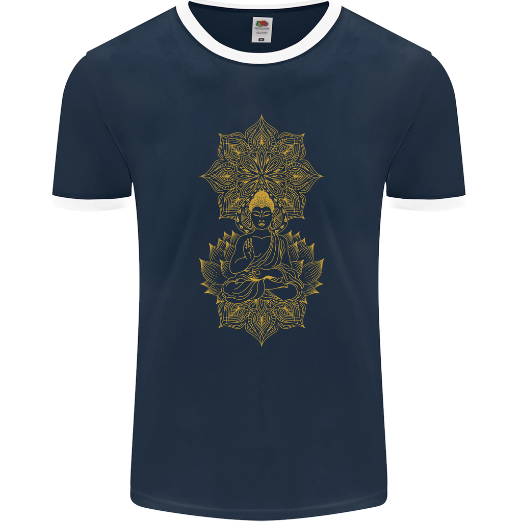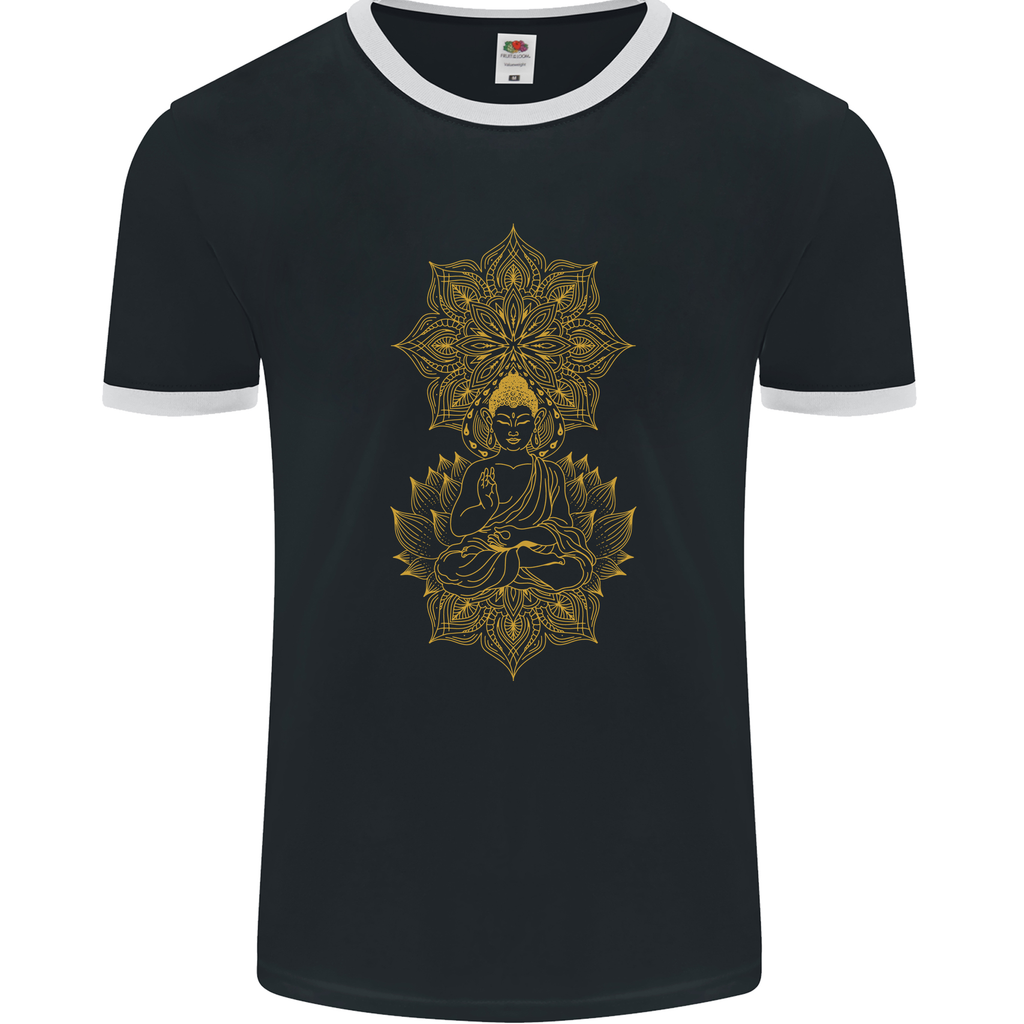 Experience the harmonious blend of tradition and modernity with our Mandala Buddha Art Men's Ringer T-Shirt. Get yours today and embrace the essence of spiritual style!