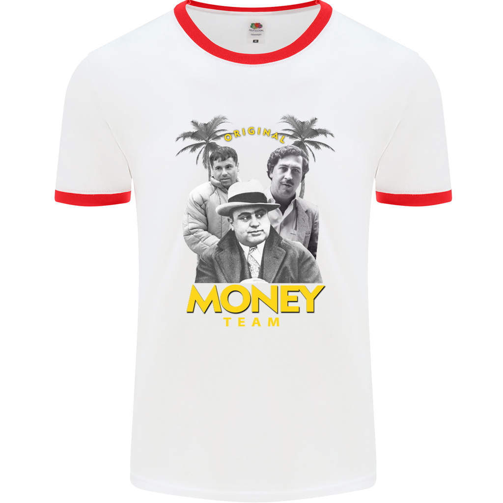 Embrace the allure of the underworld and make a bold fashion statement with our Money Team Pablo Escobar El Chapo Al Capone Men's Ringer T-Shirt. Join the league of legends and let your style speak volumes!