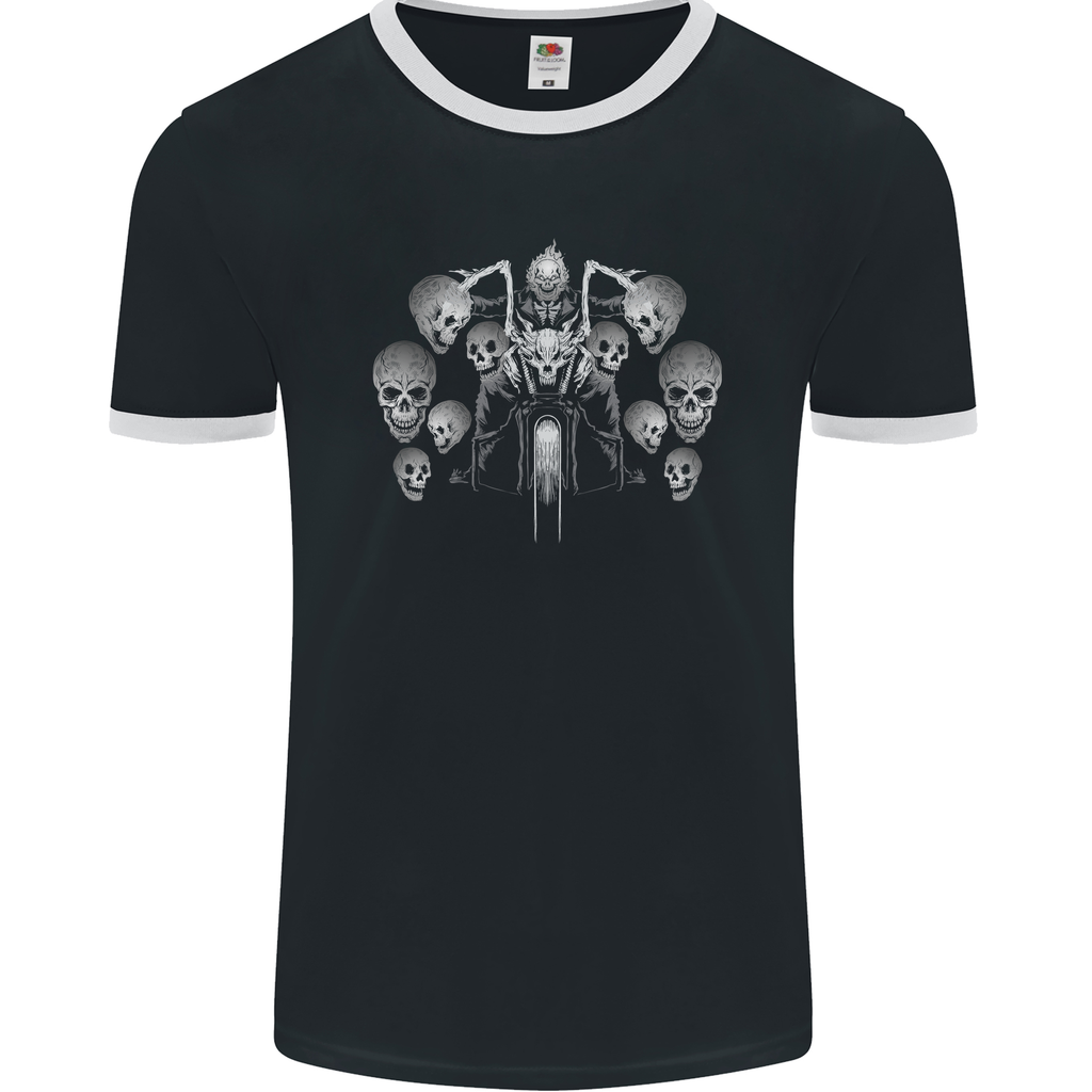 Motorcycle Skulls & Rider Motorbike Biker Mens Ringer T-Shirt FotL